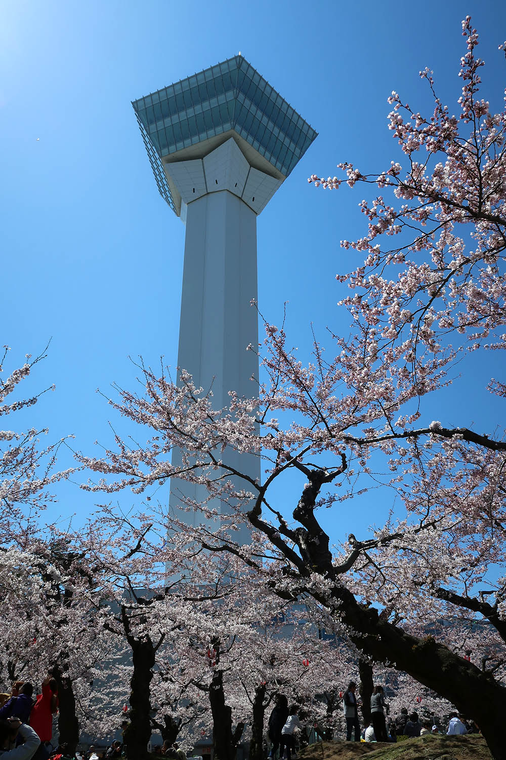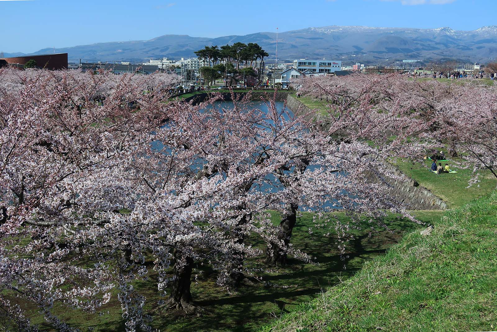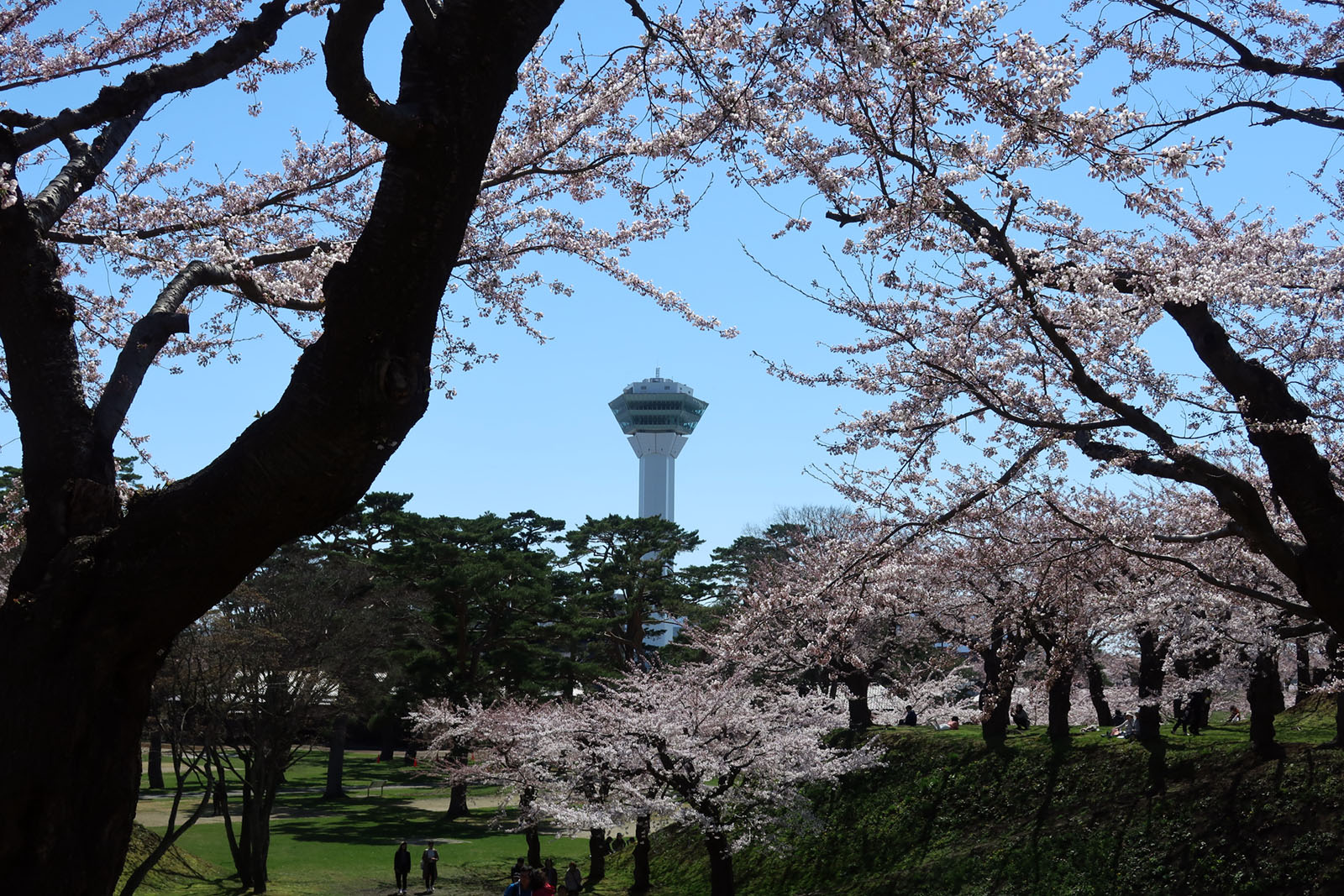 五稜郭タワーから見た桜が満開となっている五稜郭
