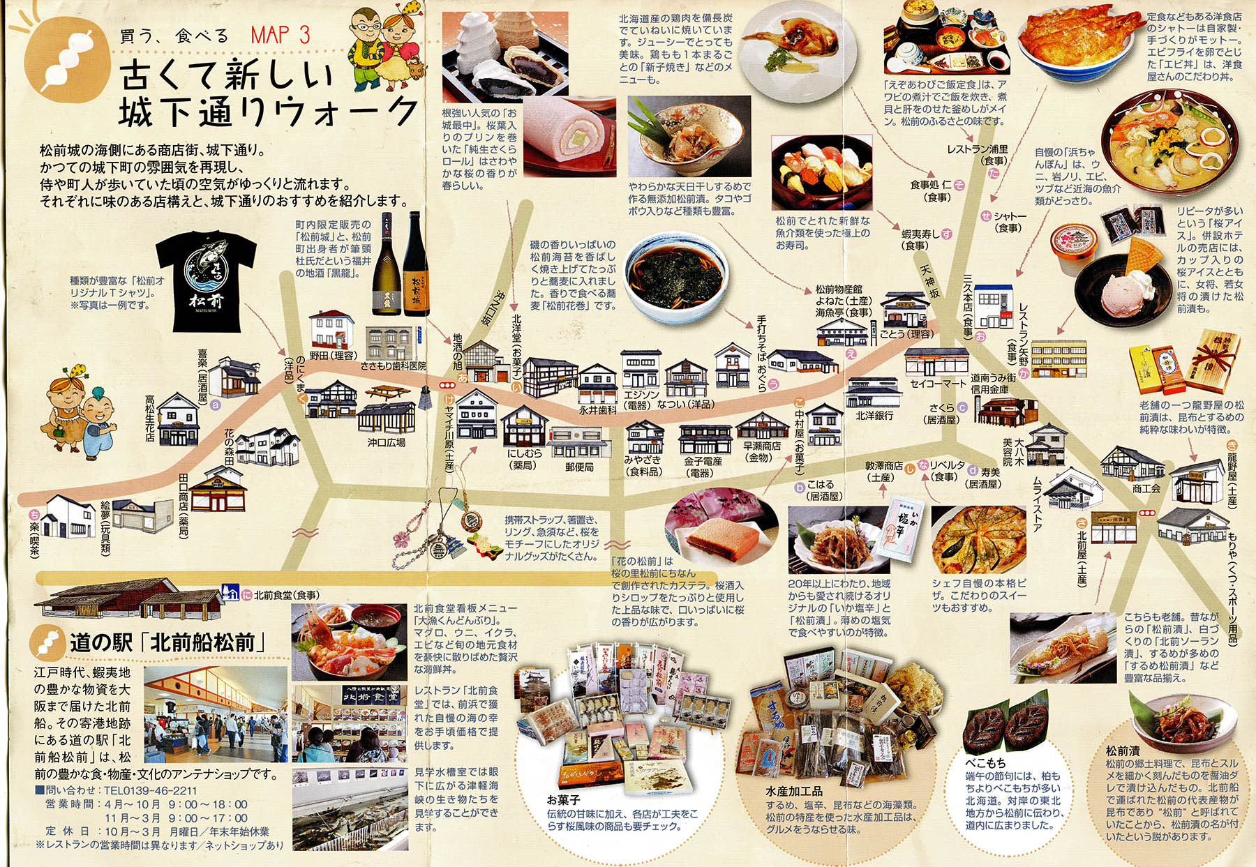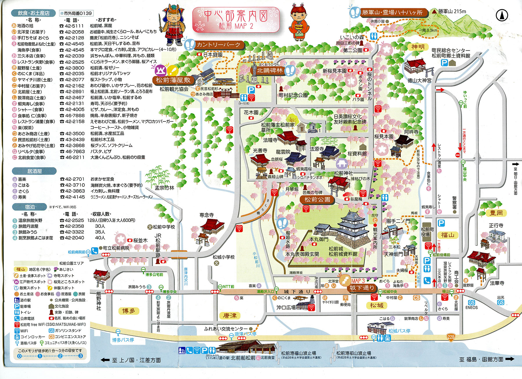 東北地方北部から北海道南部(蝦夷地)を支配していた安東氏から独立して統治者となった蠣崎(かきざき)氏(のちの松前氏)は当初、同町内神明にあった大館に居館を構えていた。1600年(慶長5)に松前慶広(よしひろ)が新たに福山に福山館と呼ばれる新しい陣屋を設け、蝦夷地支配の拠点とした。これがのちの松前城である。その後江戸時代末まで松前藩主松前氏の居城、藩の政庁となった。現在の城郭は1849年(嘉永2)に、幕府から北辺警固を命じられた当時の藩主松前崇広(たかひろ)が、外国の艦船の海上からの攻撃を想定して福山館を大改修して築いたもので、日本における最後期の旧式城郭である。戊辰戦争末の箱館戦争の際には、榎本武揚率いる旧幕府軍の攻撃を受け落城した。その時焼失した天守は1949年(昭和24)に再建され、町のシンボル、桜の名所になっている。(https://kotobank.jp/word/松前城-180326)