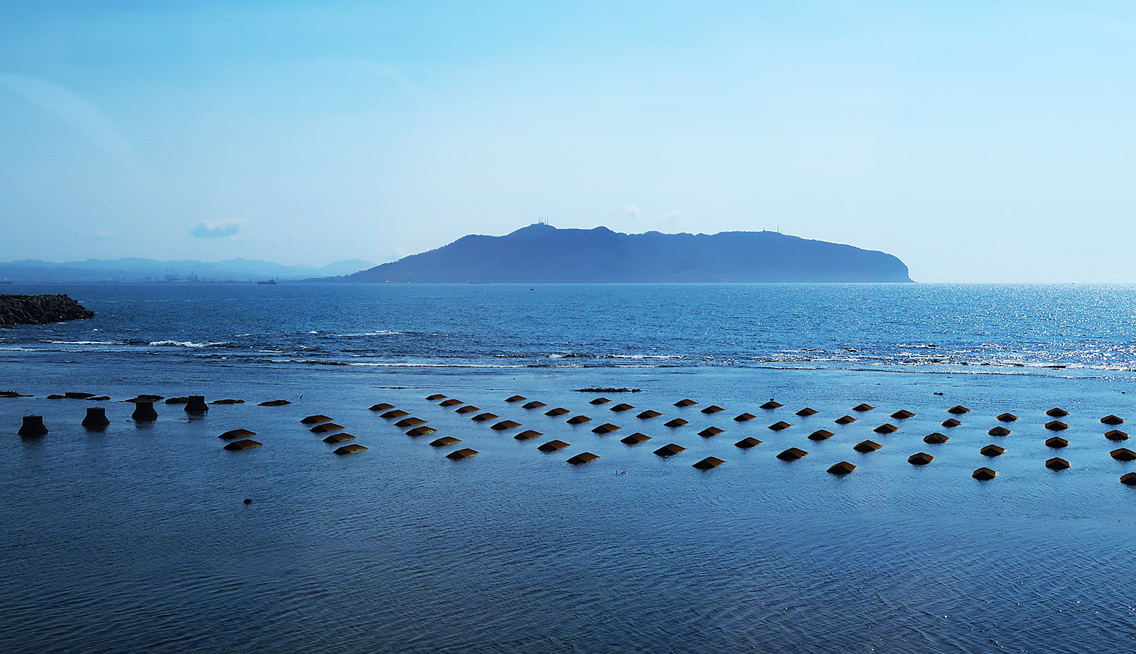 海の先に見えるのは下北半島 高野崎 竜飛岬