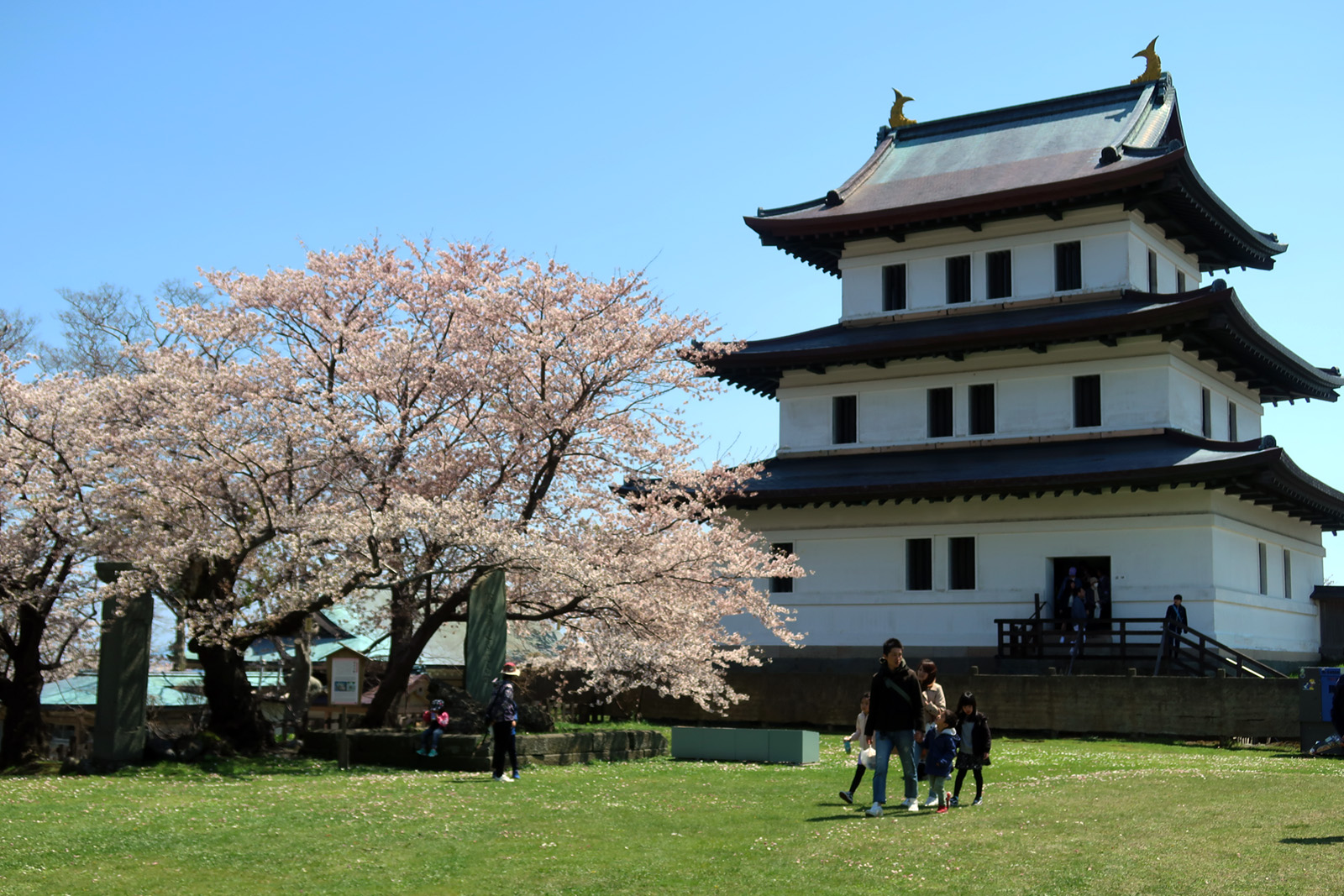 桜咲く松前城天守