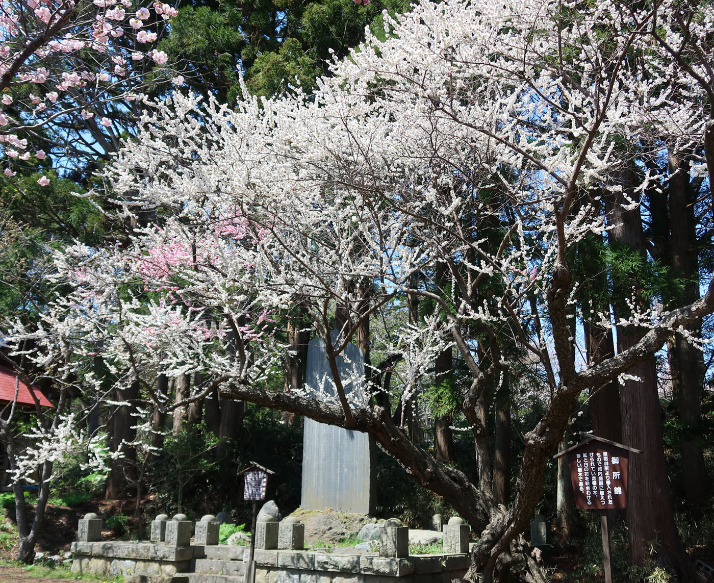 松尾神社にある御所錦 紅と白の花を咲き分ける梅の木 桜と梅の共演は珍しい