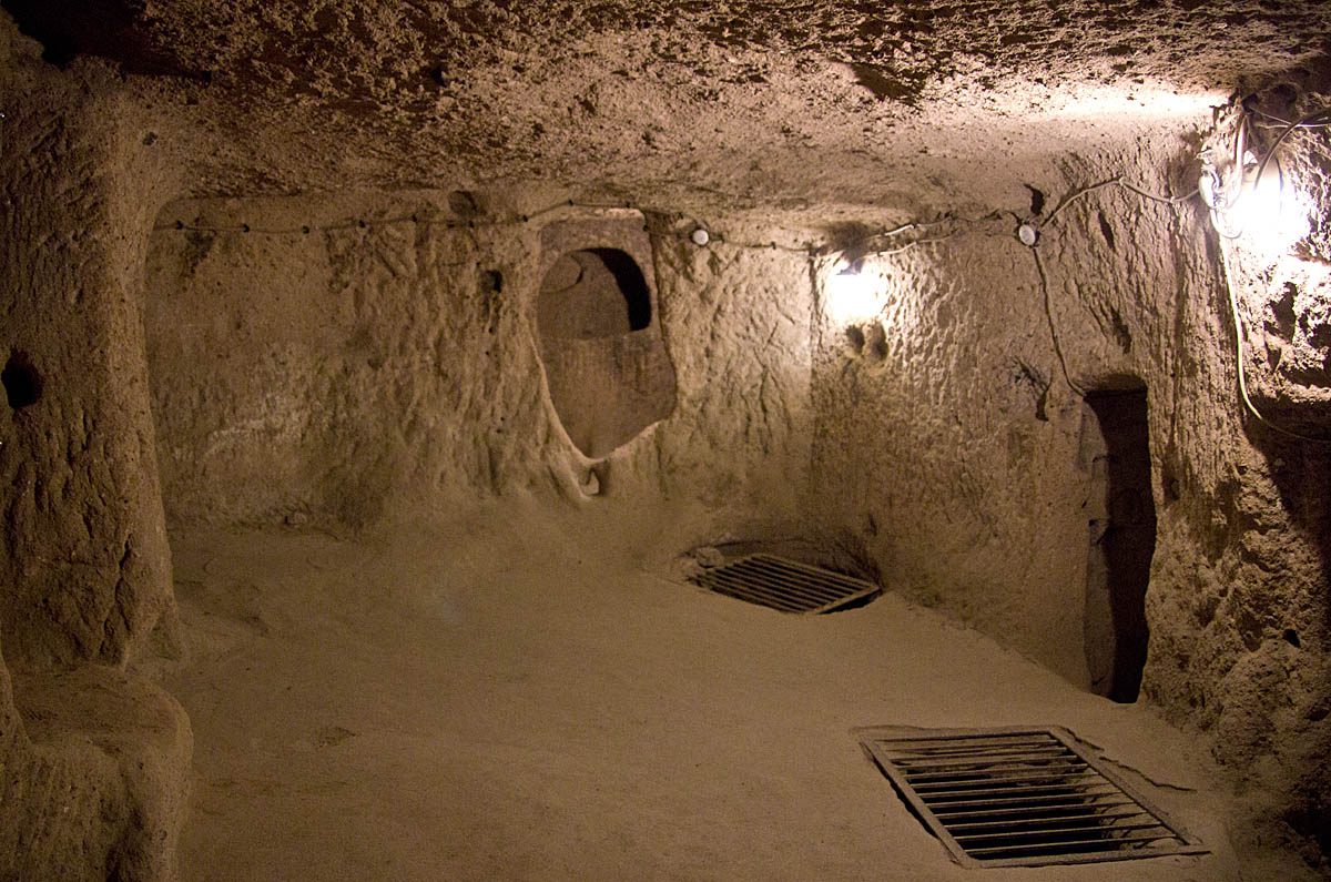 地下80m程度 教会、集会場、炊事場、ワイナリー、などもあり、