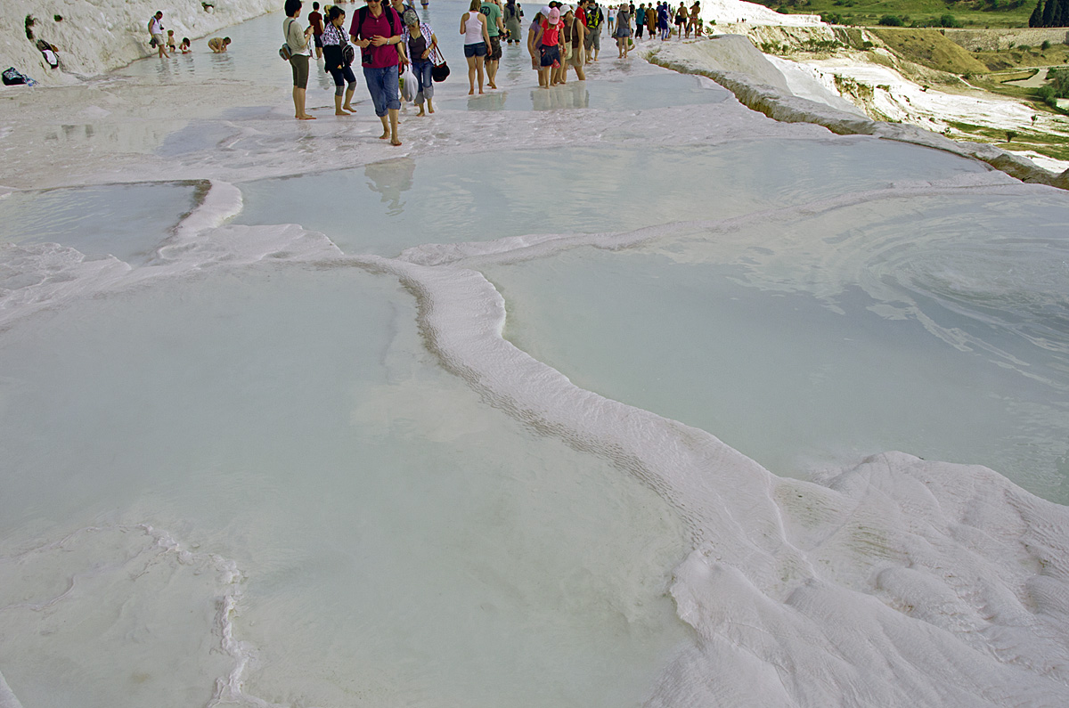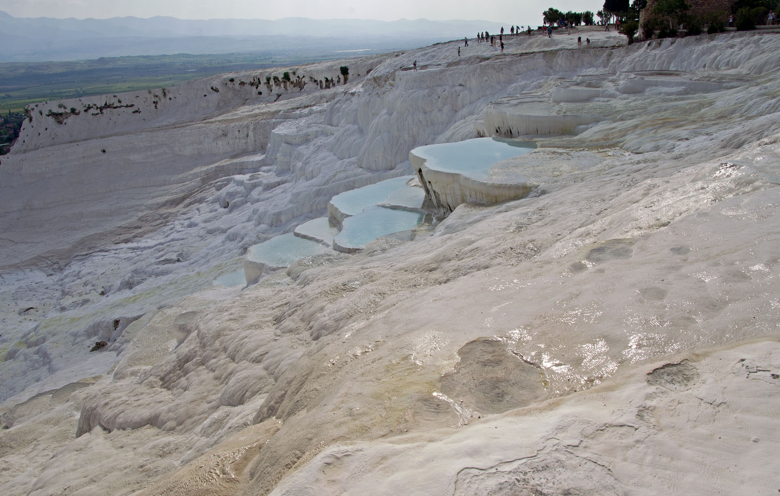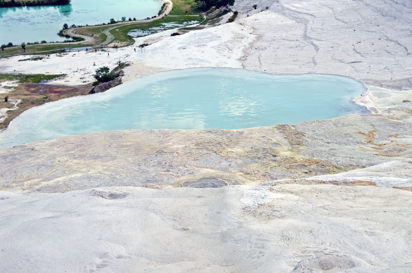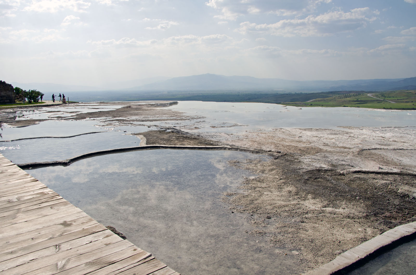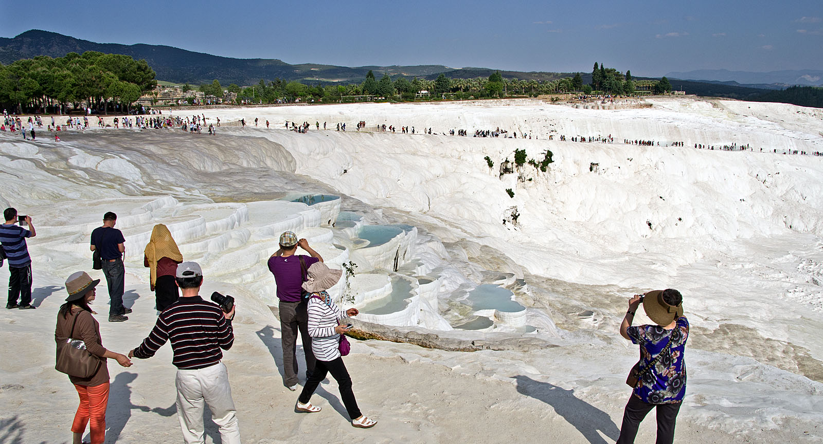 ヒエラポリス-パムッカレ トルコ西部・デニズリ県にあるユネスコの複合世界遺産 パムッカレは石灰華段丘からなる丘陵地の名前であり、2世紀頃にヒエラポリスというローマ帝国の都市があり、現在は遺跡が残る。