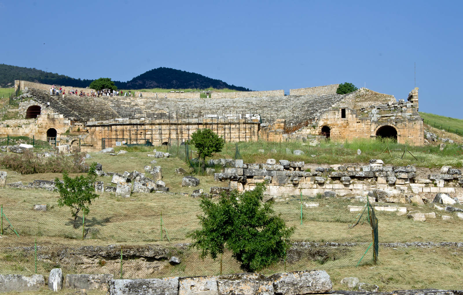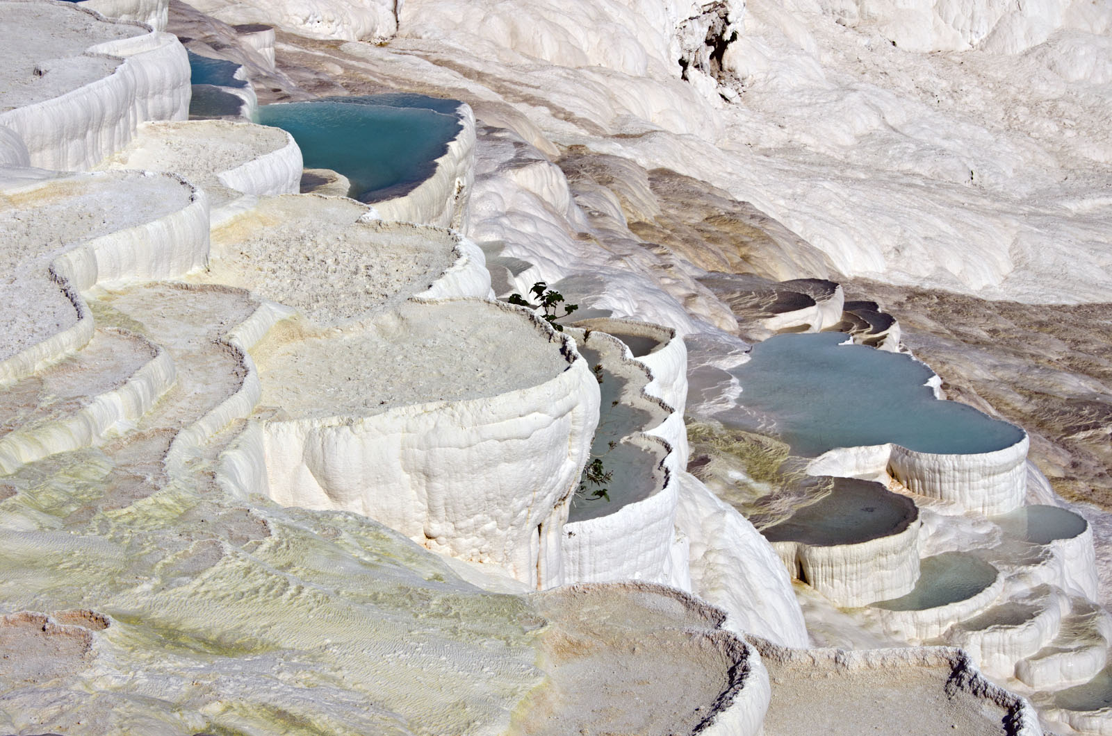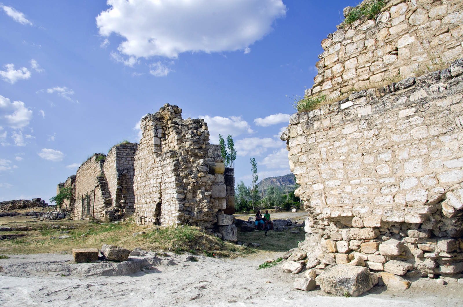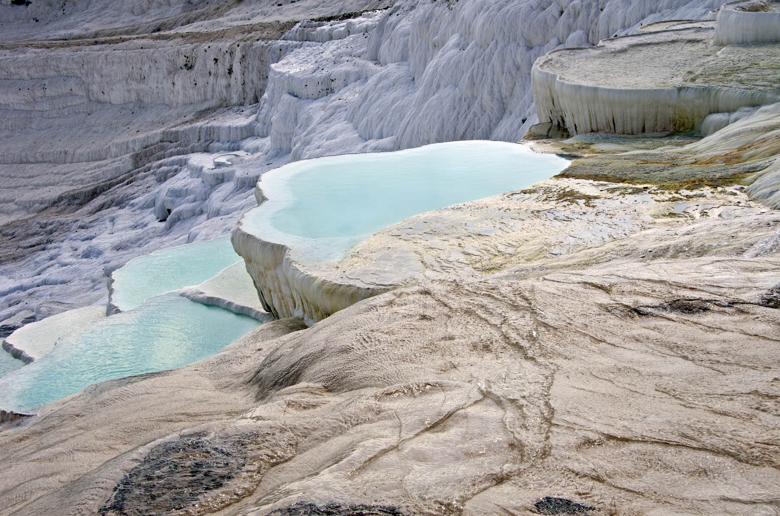 ヒエラポリス-パムッカレ トルコ西部・デニズリ県にあるユネスコの複合世界遺産 パムッカレは石灰華段丘からなる丘陵地の名前であり、2世紀頃にヒエラポリスというローマ帝国の都市があり、現在は遺跡が残る。