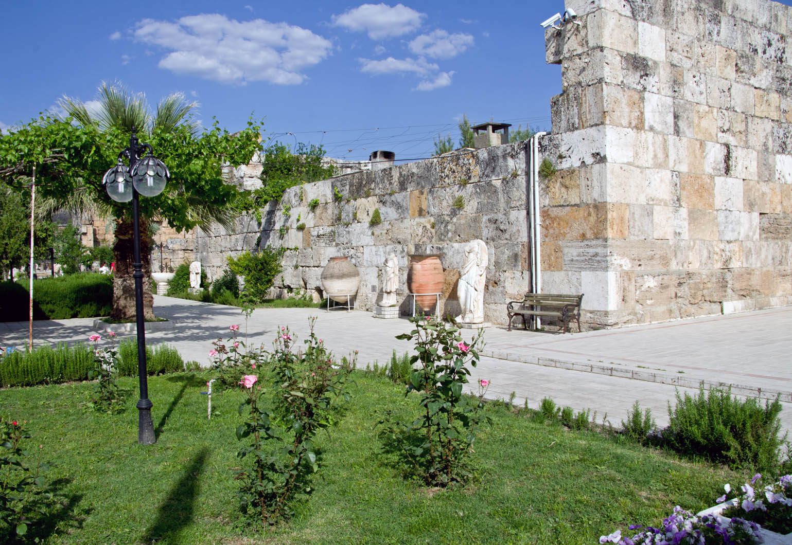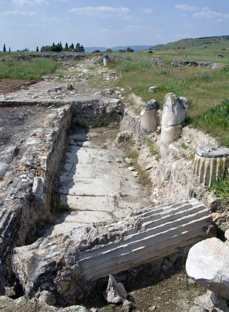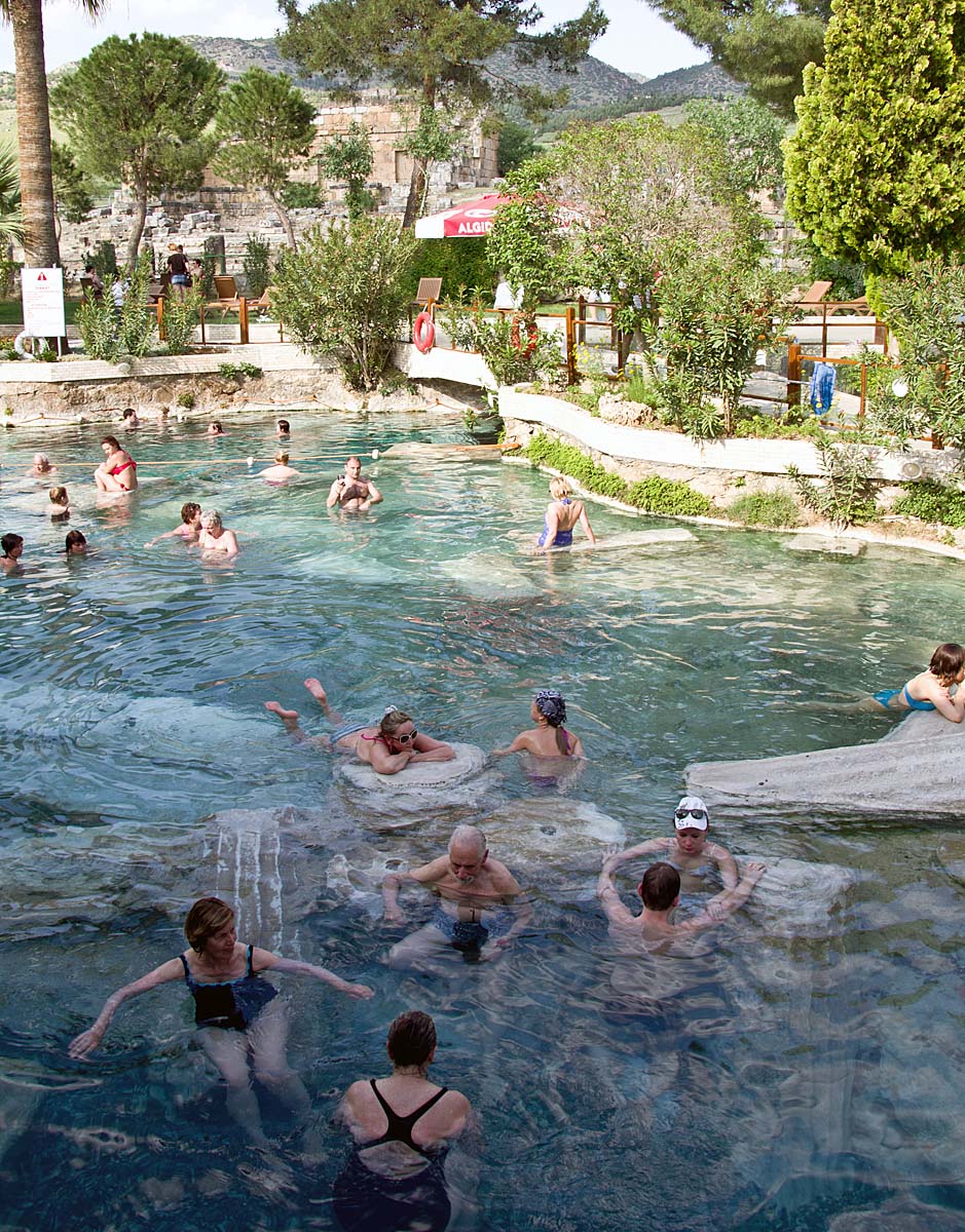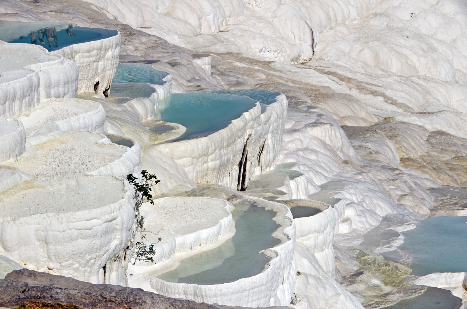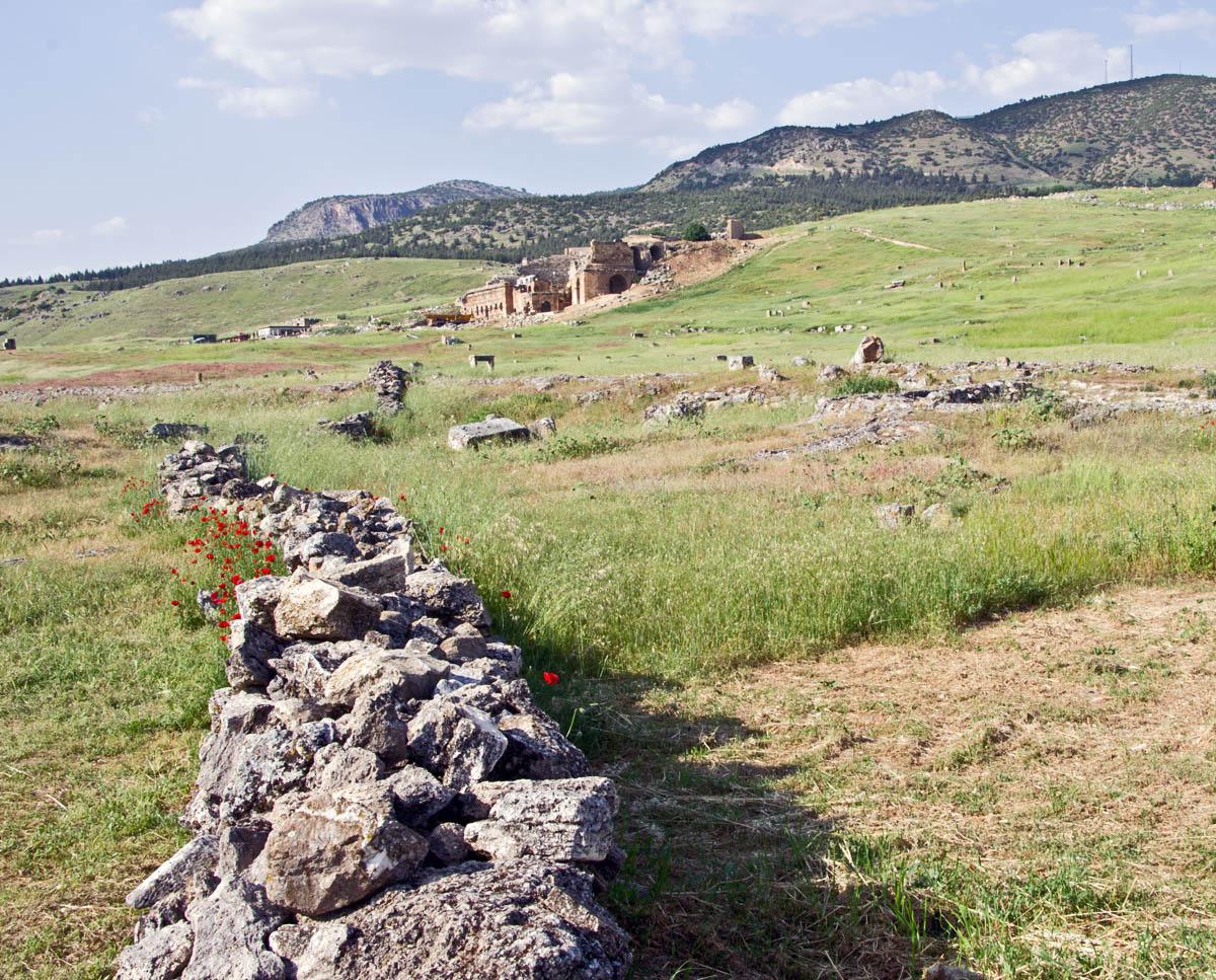 ヒエラポリス-パムッカレ トルコ西部・デニズリ県にあるユネスコの複合世界遺産 パムッカレは石灰華段丘からなる丘陵地の名前であり、2世紀頃にヒエラポリスというローマ帝国の都市があり、現在は遺跡が残る。