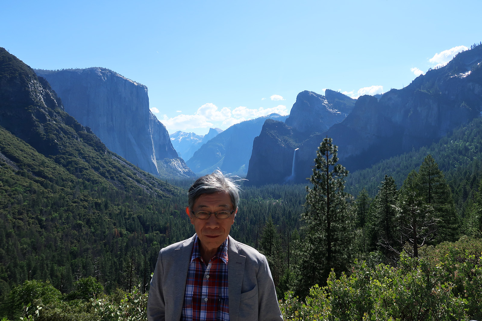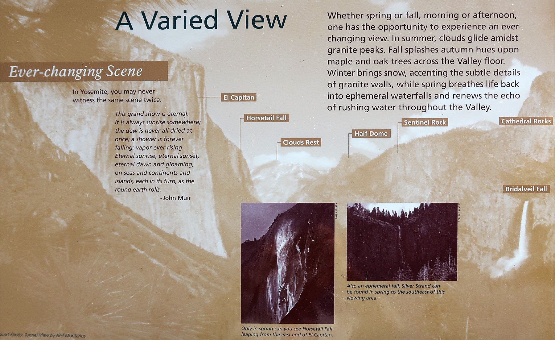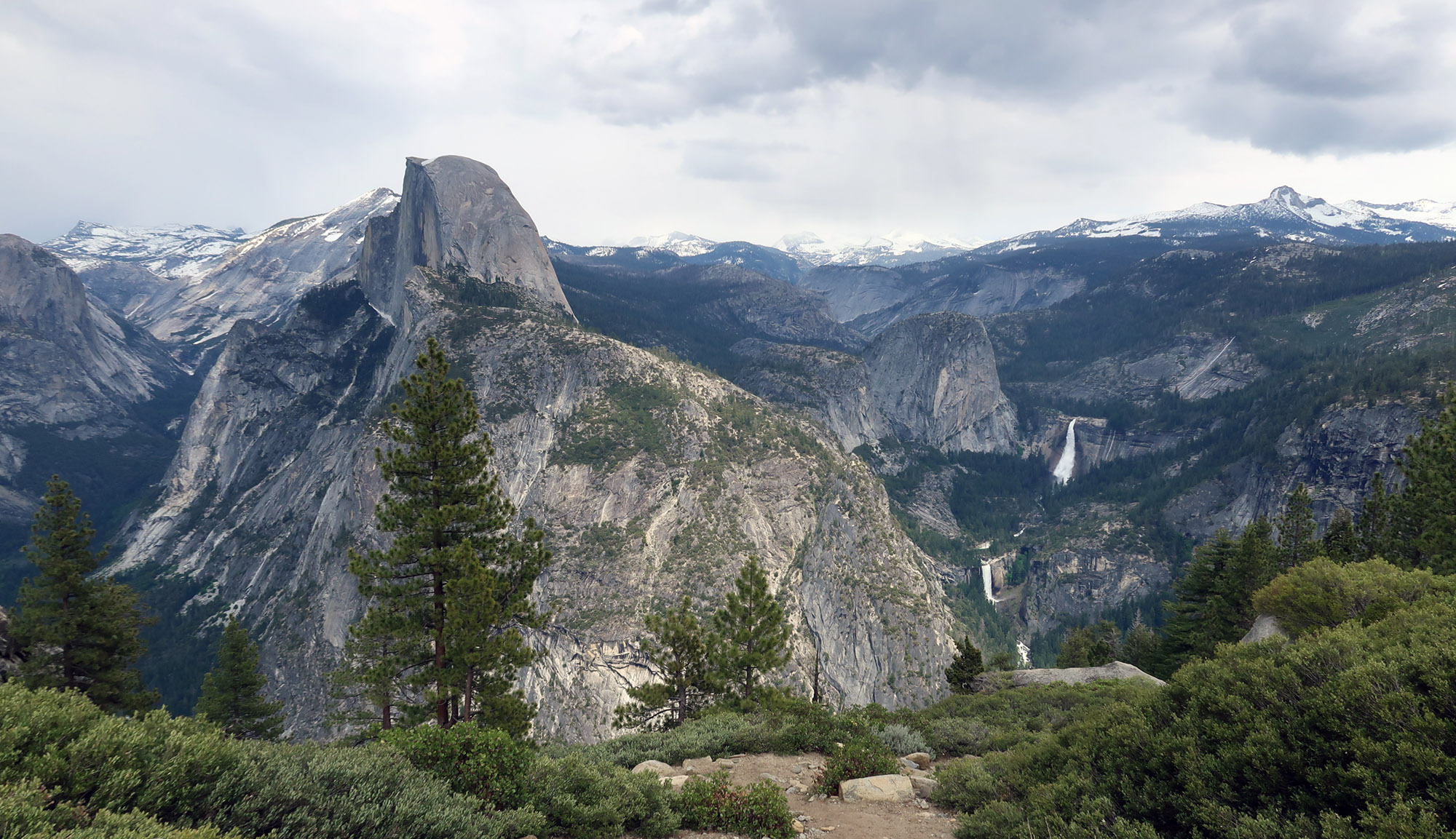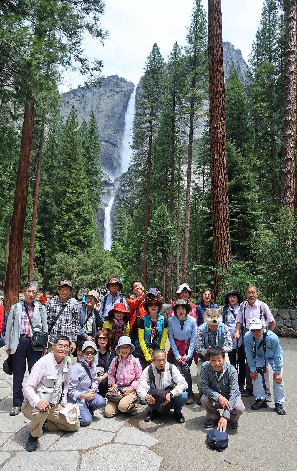 グレイシャーポイントは花崗岩でできた標高2,199mの断崖で、ヨセミテバレーを望むパノラマ展望台です。ここからは、ハーフドーム、クラウズレスト、リバティキャップ、バーナル滝、ネバダ滝、ヨセミテ滝などと周囲のハイシエラネバダ山脈の峰峰も見えます。ここはヨセミテで随一写真スポットです。ヨセミテバレーからシャトルバスで1時間ほど。バスのドライバーが説明してくれるが、もちろん早口の英語。 |