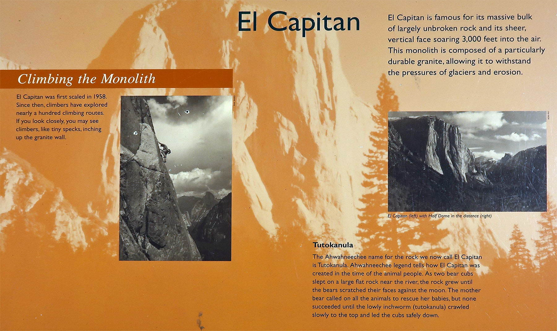 エル・キャピタン花崗岩のモノリス 1000mのほぼ垂直な岸壁 2時間で登ったという記録がある。