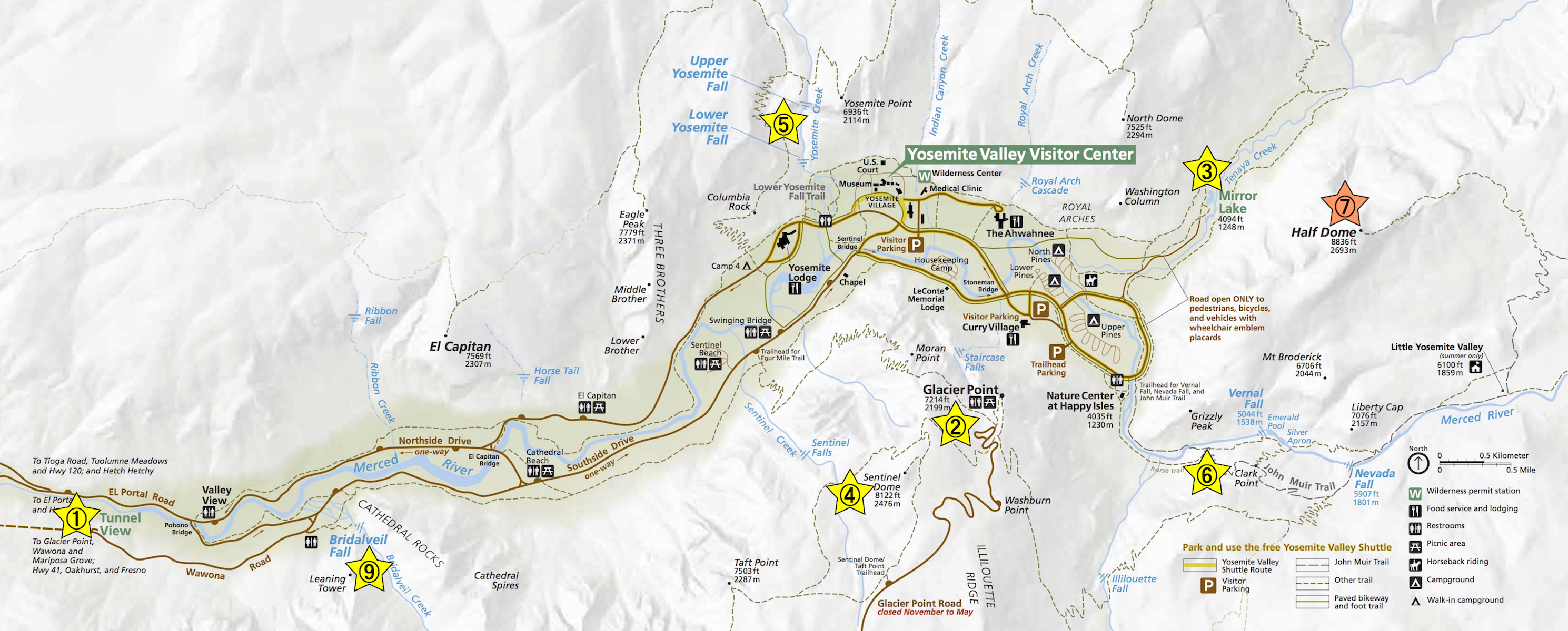 オークハーストのホテルから昨日と同じ道でヨセミテビレッジへ、ビジターセンター