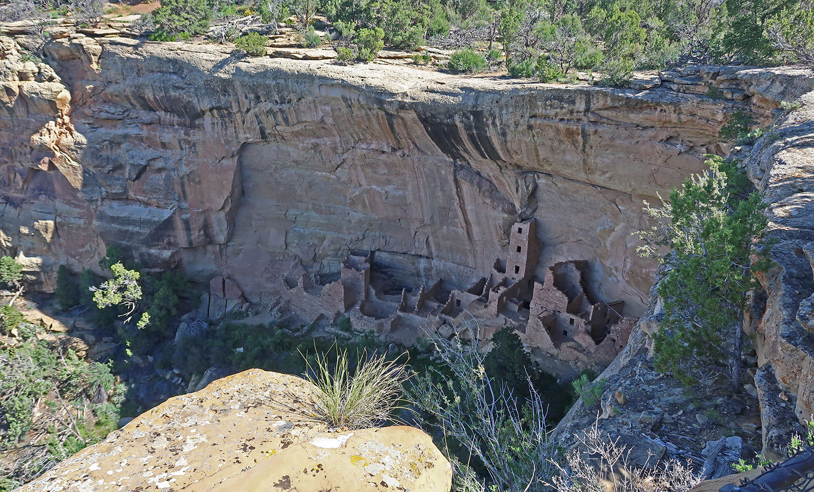 1世紀ごろから、この地に農耕民であるアナサジ族が住み始めたと推測されている。アナサジ族は、8世紀ころまでバスケット・メーカー文化と呼ばれる独特なかご作りで知られる文化を築いていたが、9世紀ころからキヴァという儀式を行う施設を伴う日干し煉瓦の壁によって区画された集落を築くようになる。これをプエブロ文化と呼び、 12世紀頃になると、外敵の襲来に備えた、本格的な「岩窟住居」を作り、そこに住み始めたと考えられている。 |