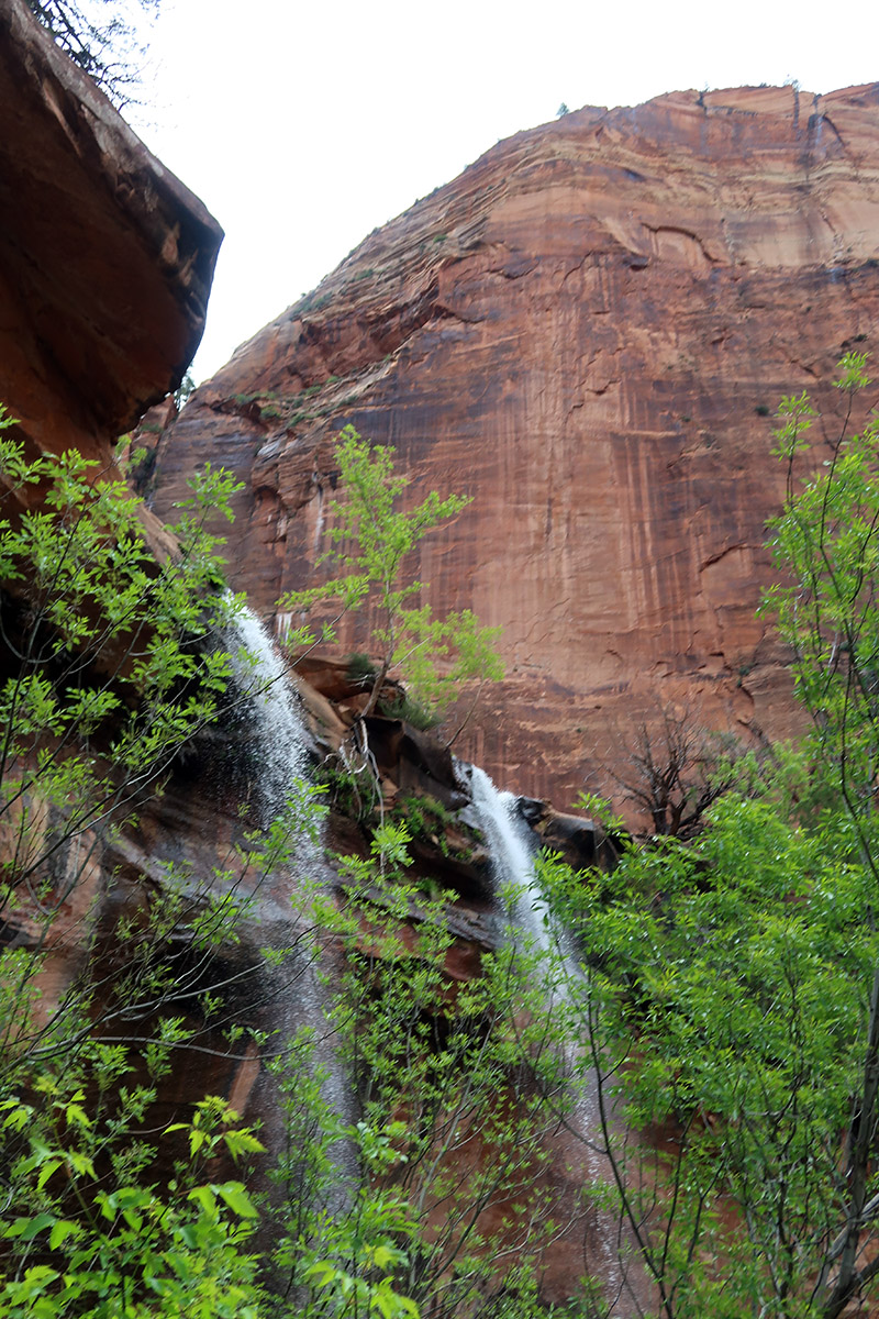 エメラルドプール トレイルを登ると半円形の崖に数本の滝がかかっている。