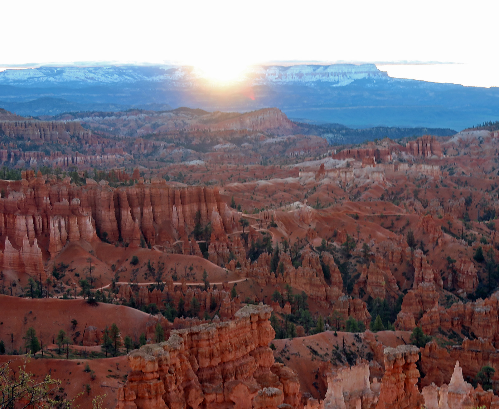 日の出前にブライス・キャニオン国立公園で日の出などを観光、昼食後、デスバレーに移動して宿泊 |
