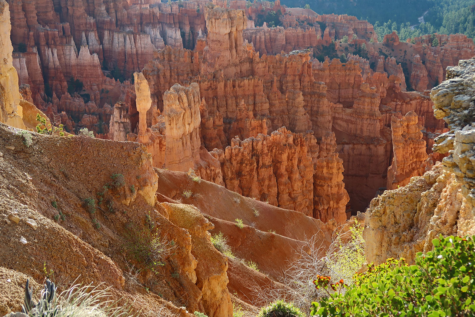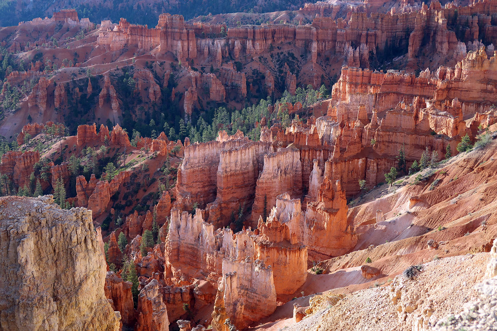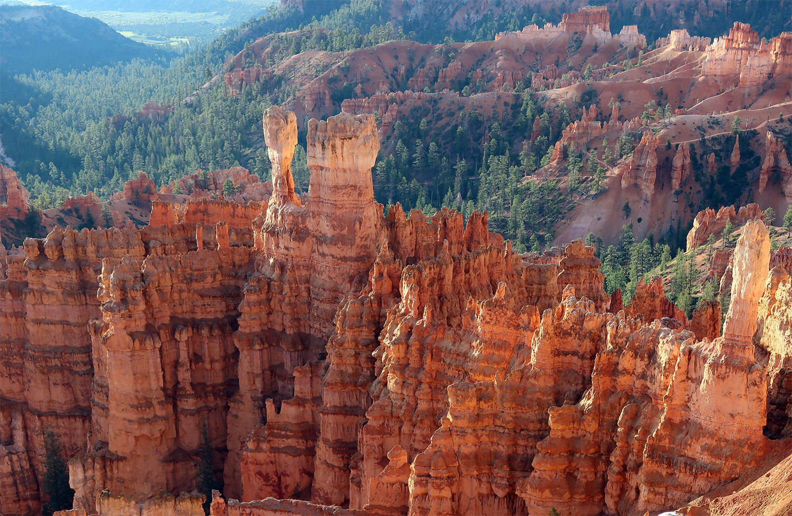 ブライス・キャニオン国立公園(Bryce Canyon National Park)は、米国ユタ州南西部に位置する国立公園である。ブライス・キャニオンは名とは異なり、実は峡谷というより、むしろ高原の東側沿いの侵食によってできた、「土柱」と呼ばれる独特の地質構造を有する巨大な自然の円形劇場(アンフィテアトルム)である。土柱は、風、水、氷による川床と湖床の堆積岩の侵食により形成されたものである。赤、橙、白の岩の色が、公園を訪れる人々に見事な風景を見せてくれる。