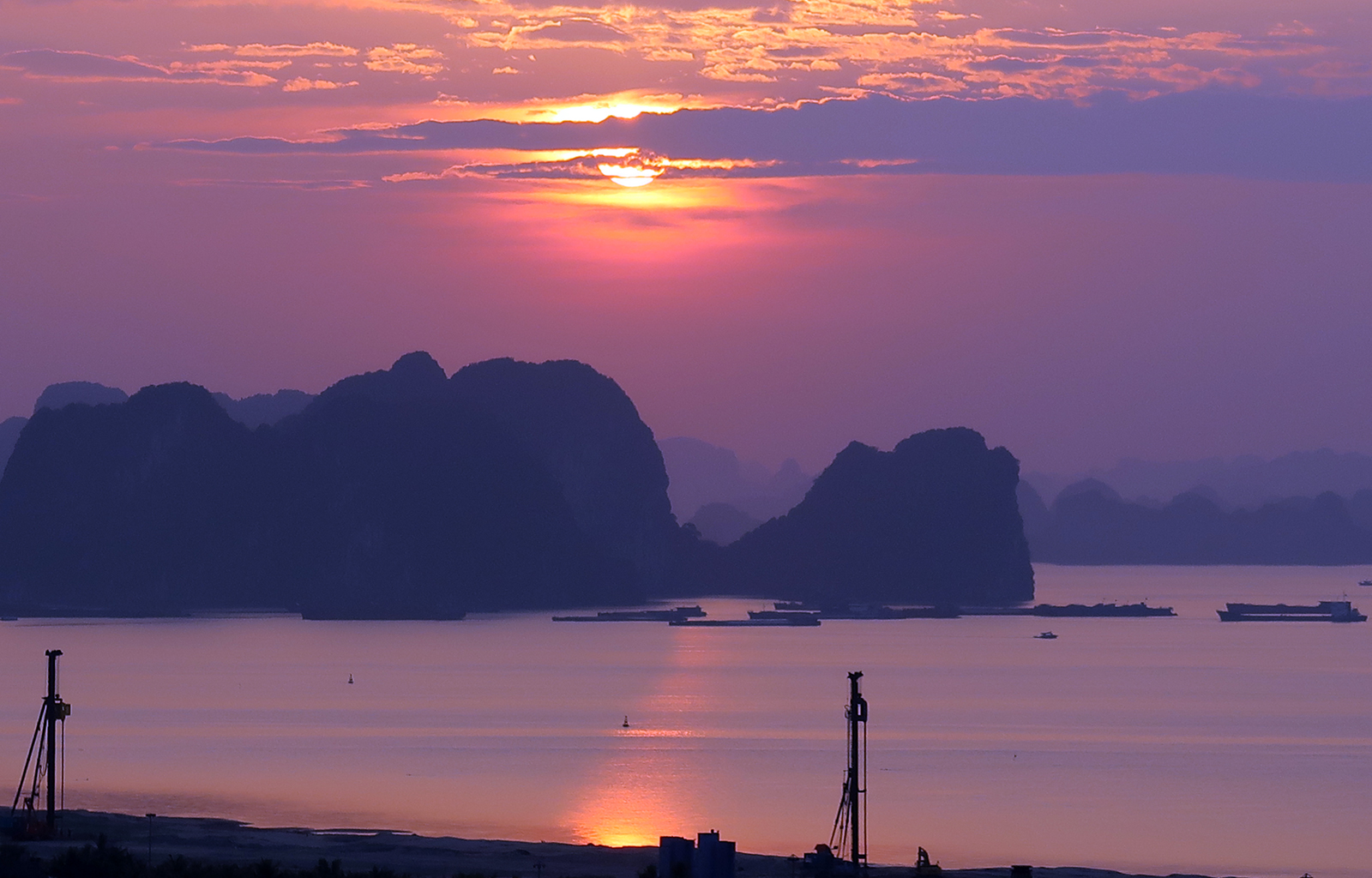 ホテルのベランダから見たハロン湾の朝