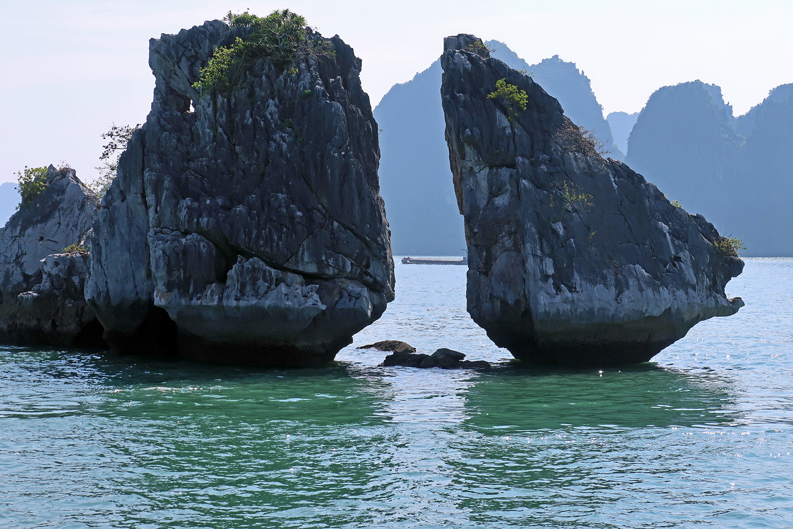 奇岩群の中には、動物のようなものが多く、中でも闘鶏岩はシンボルとして有名です。ハロン湾の中心に位置する全長12mの突き出た2つの岩は、そのユニークな自然の形から、ニワトリ岩とか雄鶏岩と雌鶏岩とも呼ばれます。