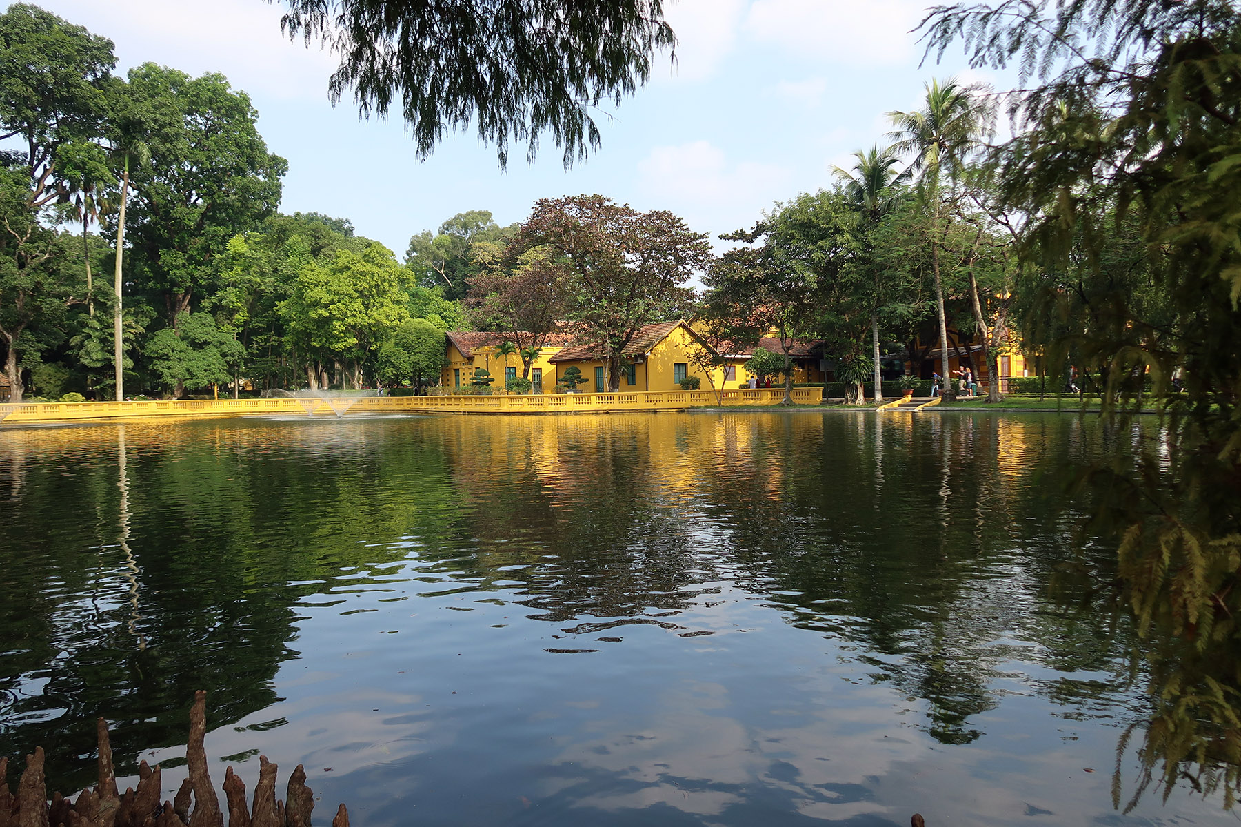 ベトナムの民族解放と独立のために南北統一に生涯をかけた、今もベトナム国民の父として敬愛されるホーチミンの亡骸が眠る場所。廟は、バーディン広場の奥にあり、1973〜1975年にベトナム全土から集められた自然の素材を用いて建造された。一年中冷房の効いた内部の部屋に永久保存処置を施されたホー・チ・ミンの遺体が安置されている。廟の中はベトナム人民軍の軍人により警護されており、私語厳禁で立ち止まることは許されない.