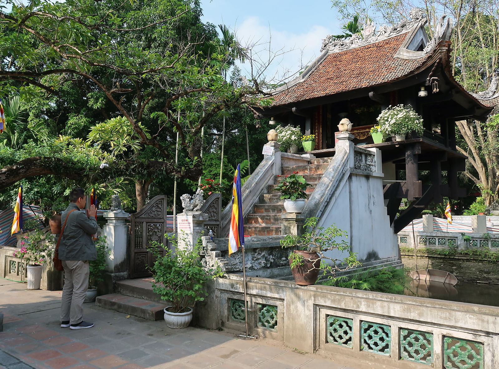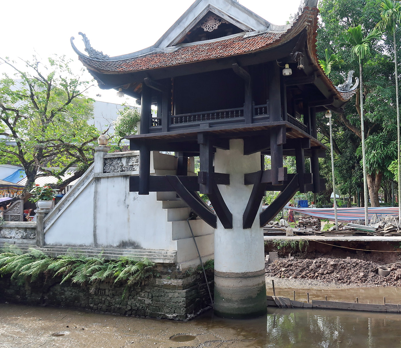 12世紀に北部ベトナムに王朝を築いた李朝の王、リータイトーが建てたお寺。一本の丸い柱の上に小さな仏堂のみというシンプルな構成ですが、蓮池の中央に建ち、蓮の花に見立てている一風変わった外観となっている。