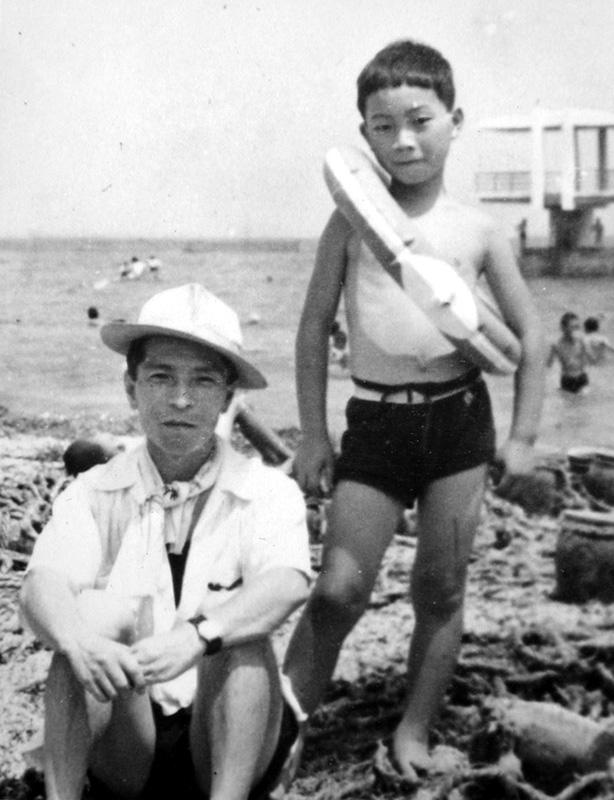 富貴の海水浴場 父と