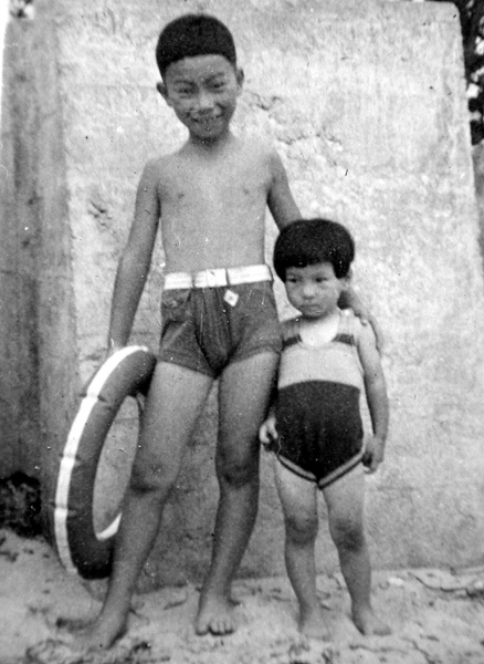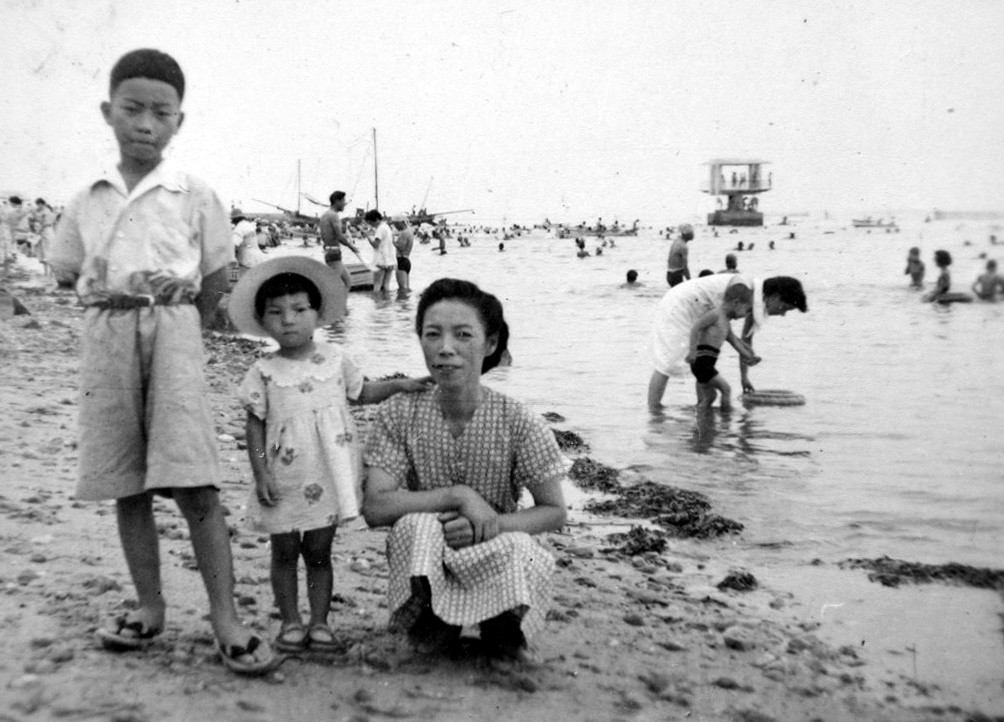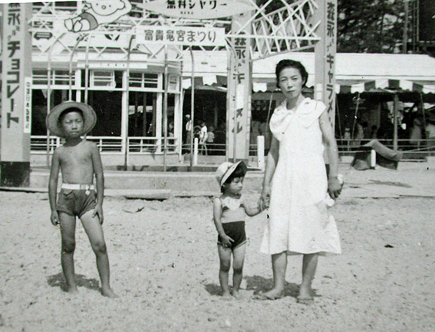 富貴の海水浴場 母と妹