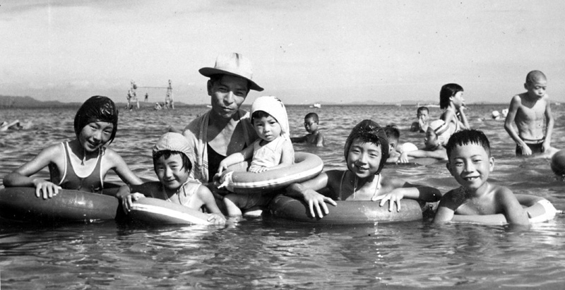 富貴の海水浴場 父,妹,足立の従兄弟達と