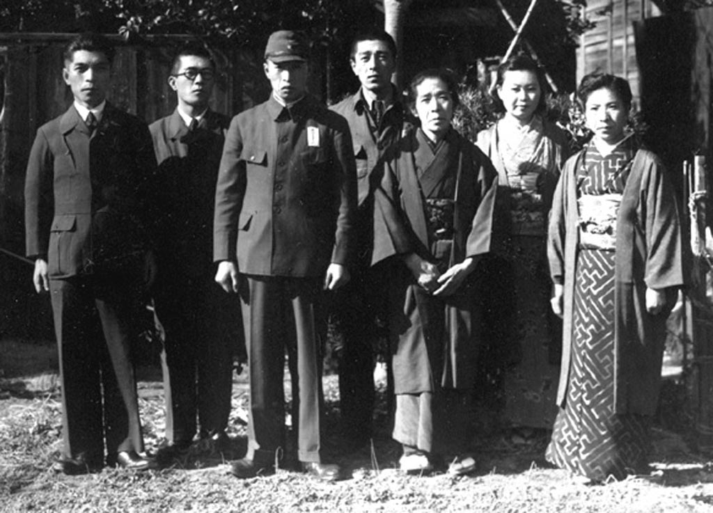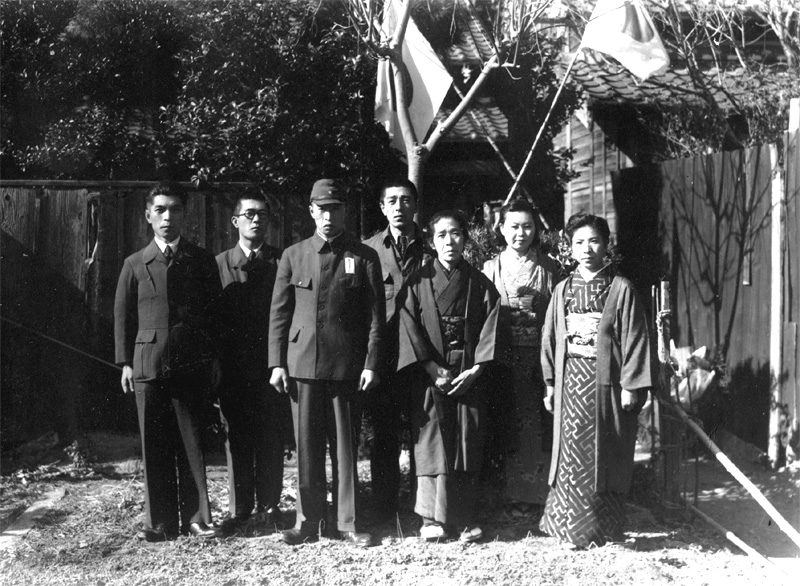祖母と叔父叔母(9人)喜久也叔父(中央)の出征の時