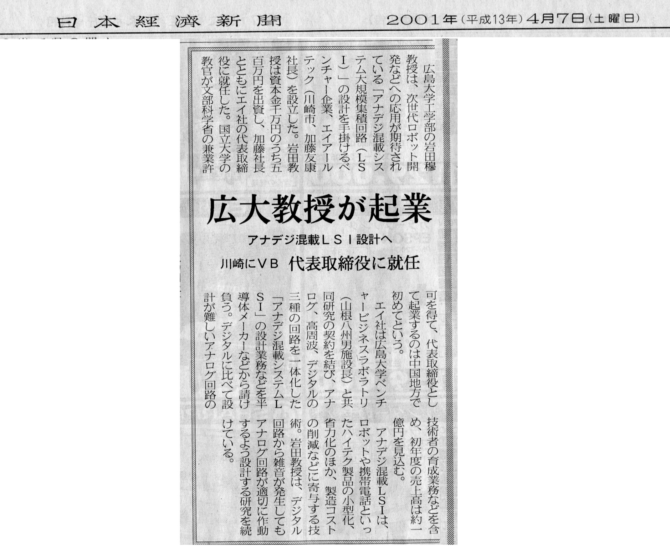 2001年に岩田穆はA-R-Tecを起業,週刊東洋経済や新聞各紙で報道。