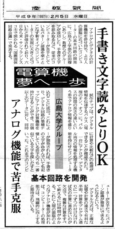 この発表に関して新聞やテレビで報道され、中国新聞1997.2.5の夕刊トップに掲載。