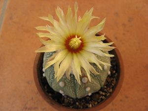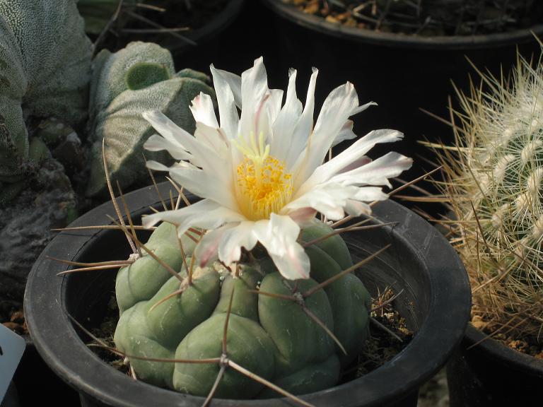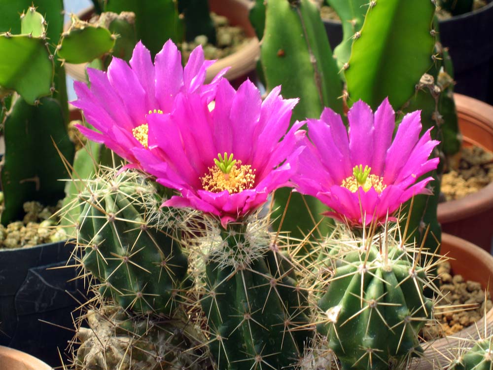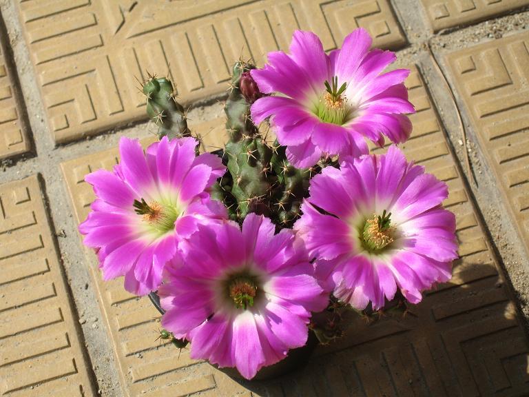 御旗MZT 刺の白さが際立っていたので35年間維持した.マゼンタ色の花を咲かせたのには驚いた.自然界でまれな色が2/4の割合で出たのは人間の好みあるいは観賞価値の高さに原因する人為的濃縮と言うべき現象であろう.