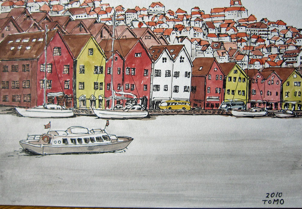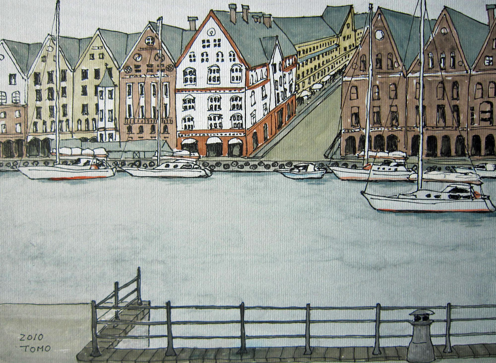 作品13 旅の思い出6 [制作2010年7月] ノルウェイ ベルゲン散歩 (なぜか心落ち着く北欧の風情) |