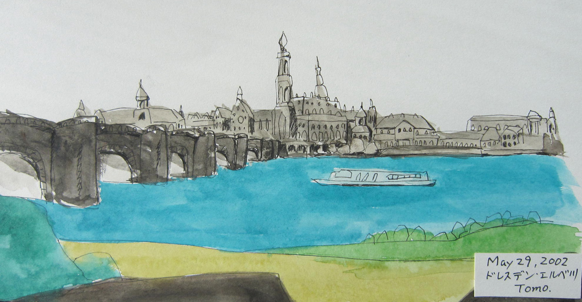 作品17 旅の思い出10 [制作2002年5月] 旧東ドイツ ドレスデン エルベ川のほとり (黒っぽい石の建物が、美しい) |