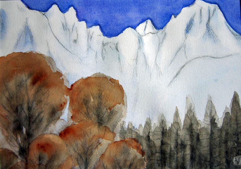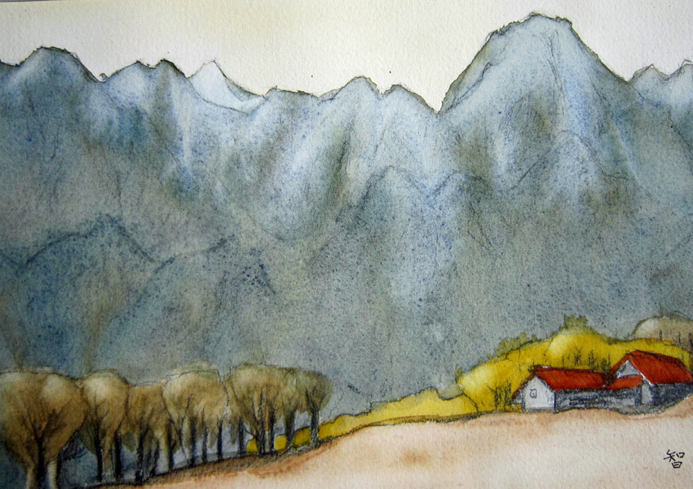 作品1 八ヶ岳南麓からの風景1 [制作2011年3月] 我が家の2階から初冬の南アルプスを遠望 |
