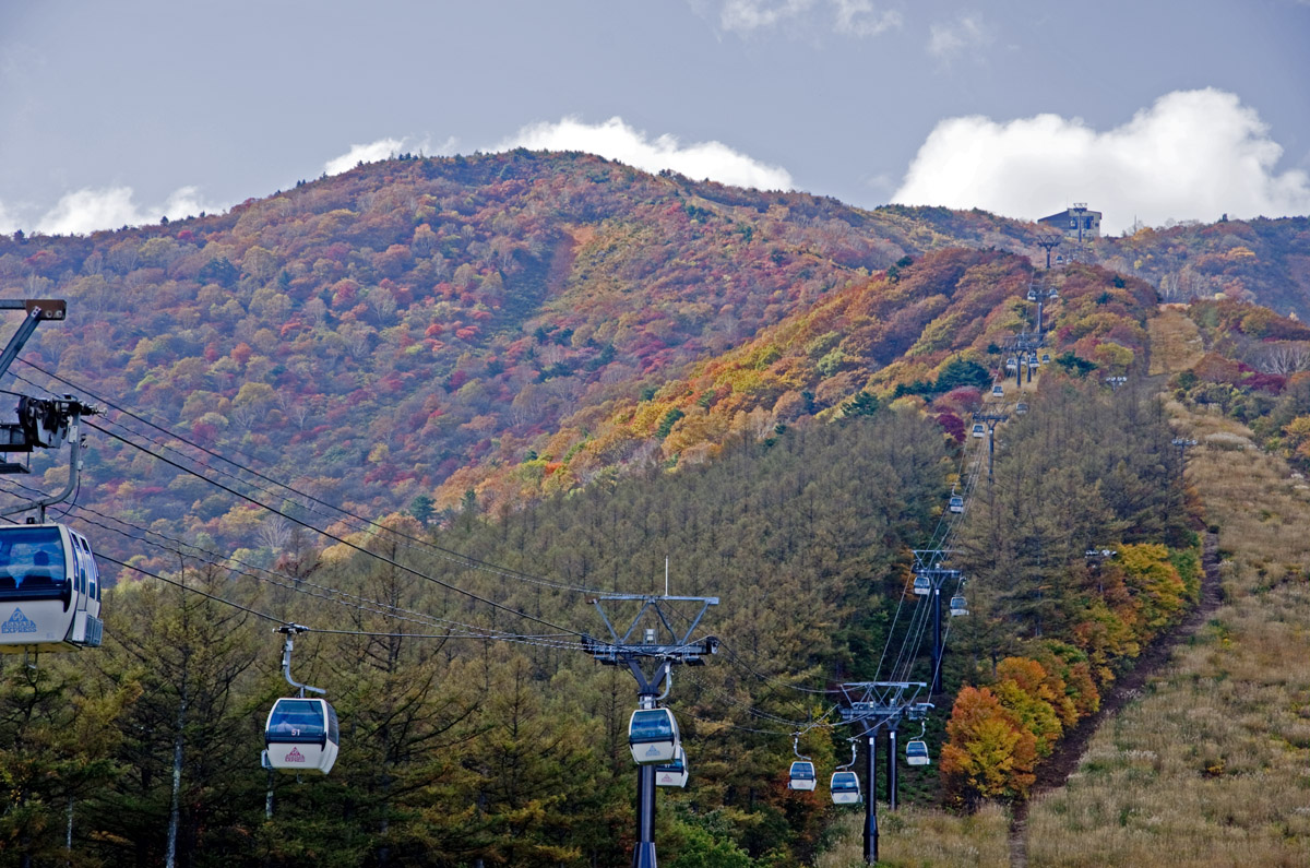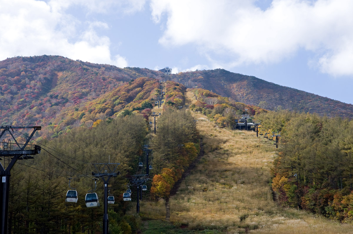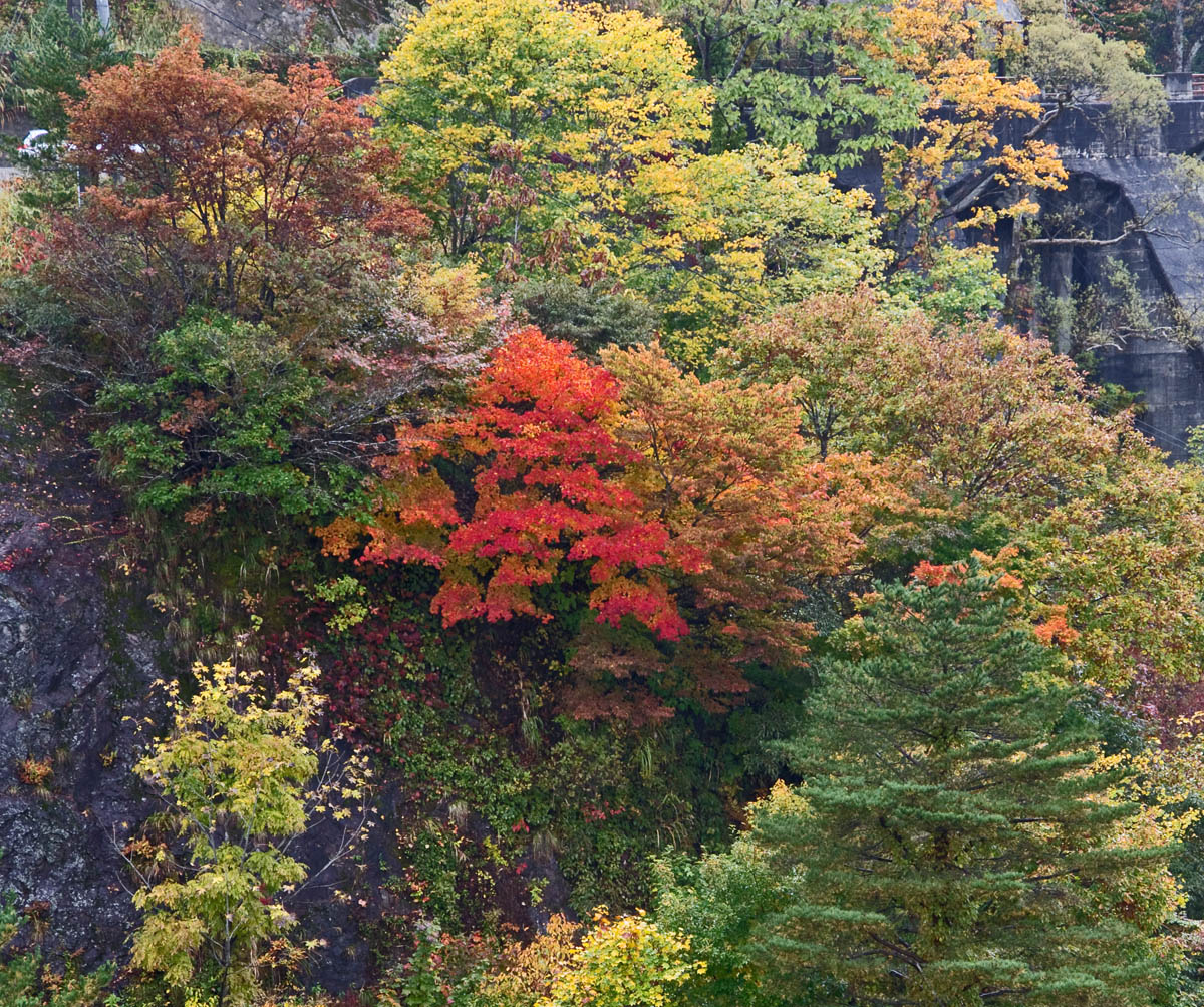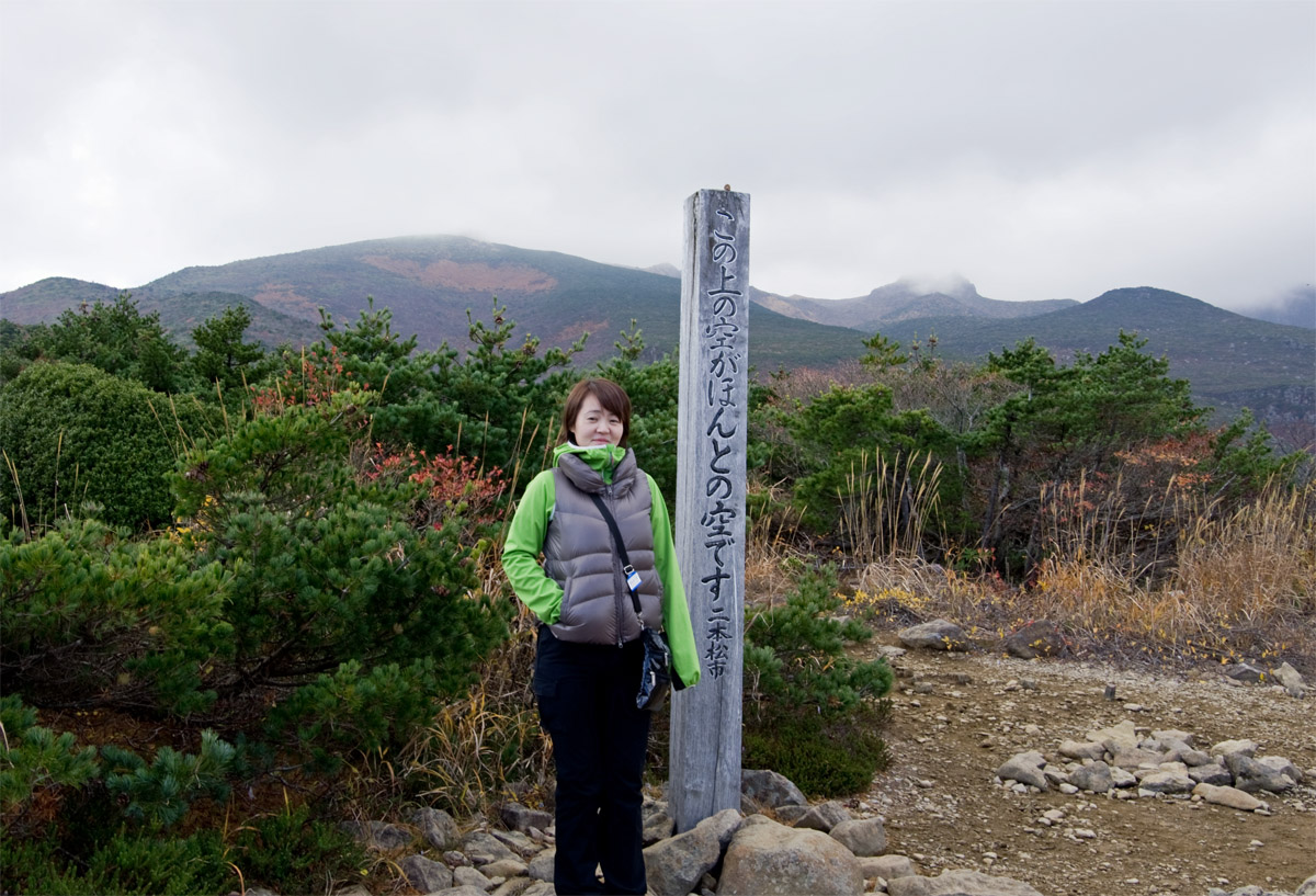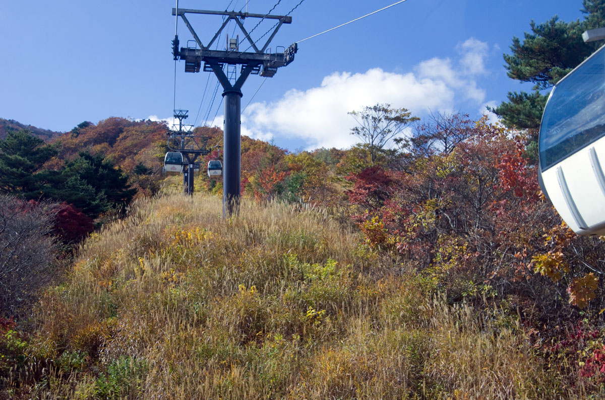![]() 薬師岳展望台(ロープウエイの山頂駅)からの安達太良山 中腹の紅葉が盛り |