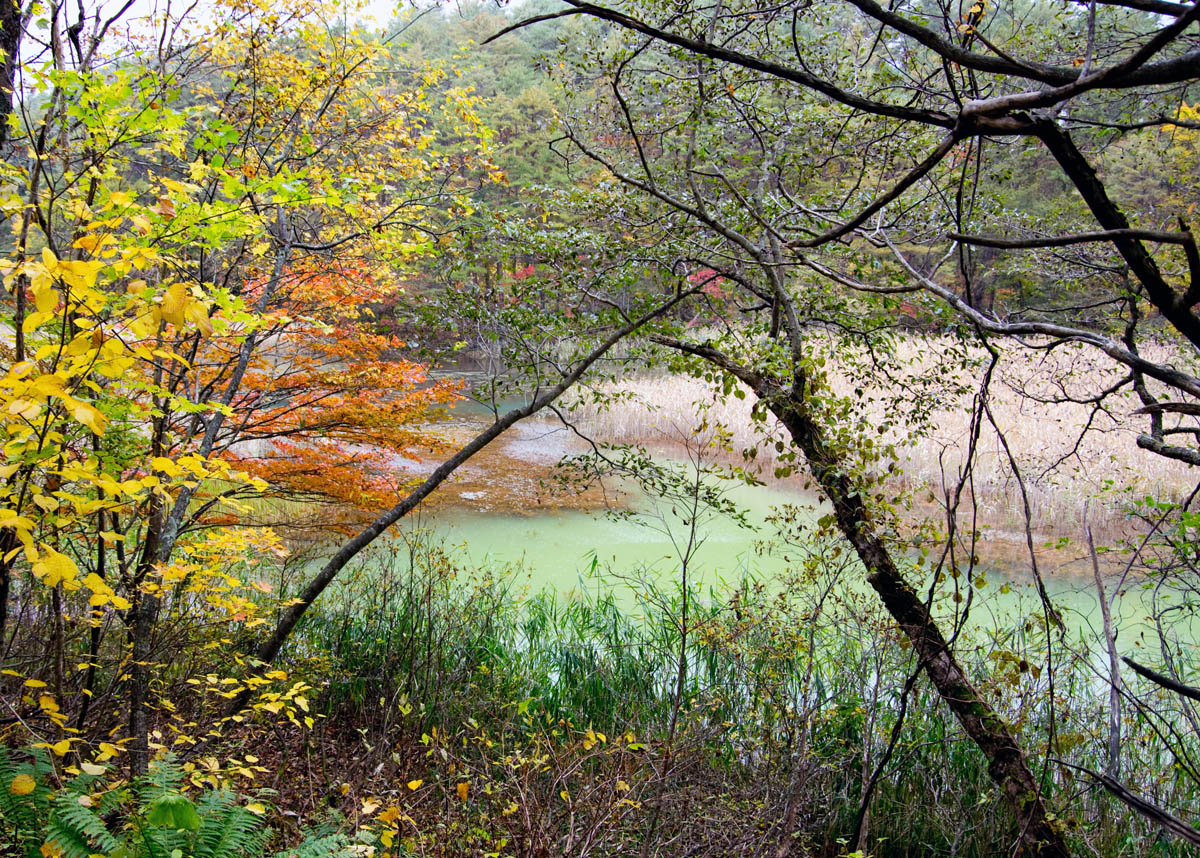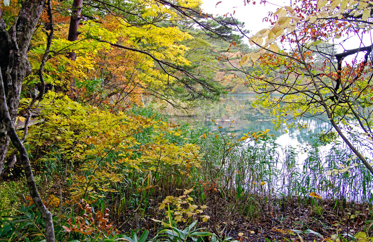 ![]() 会津磐梯山麓の毘沙門沼から沼をめぐって桧原湖まで3.9km, 70分の散策路 |