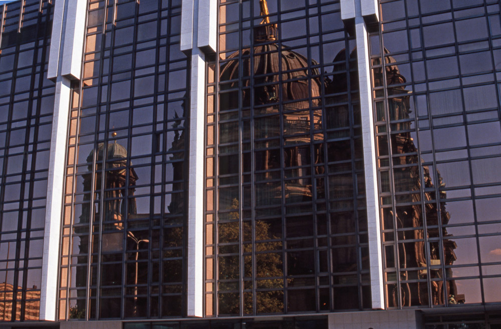 東ベルリン大礼拝堂(近代的ビルのガラスに映る)