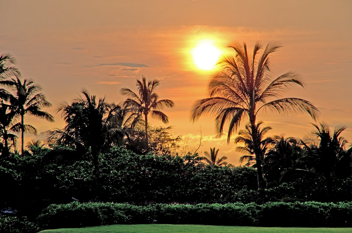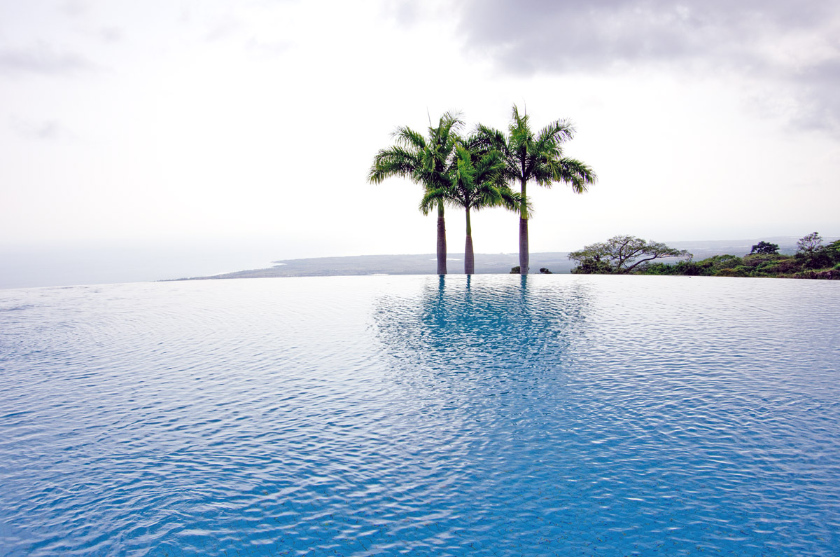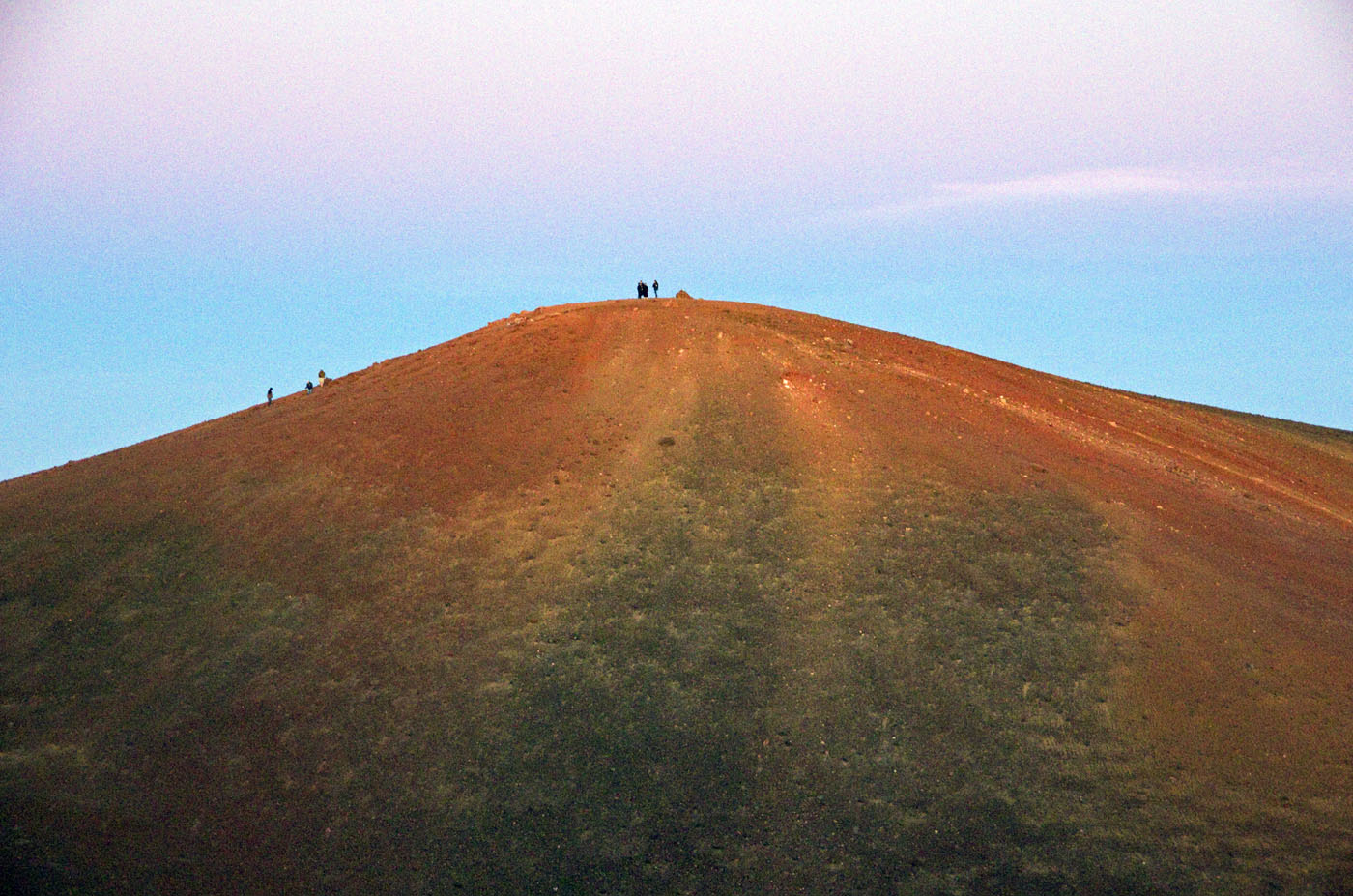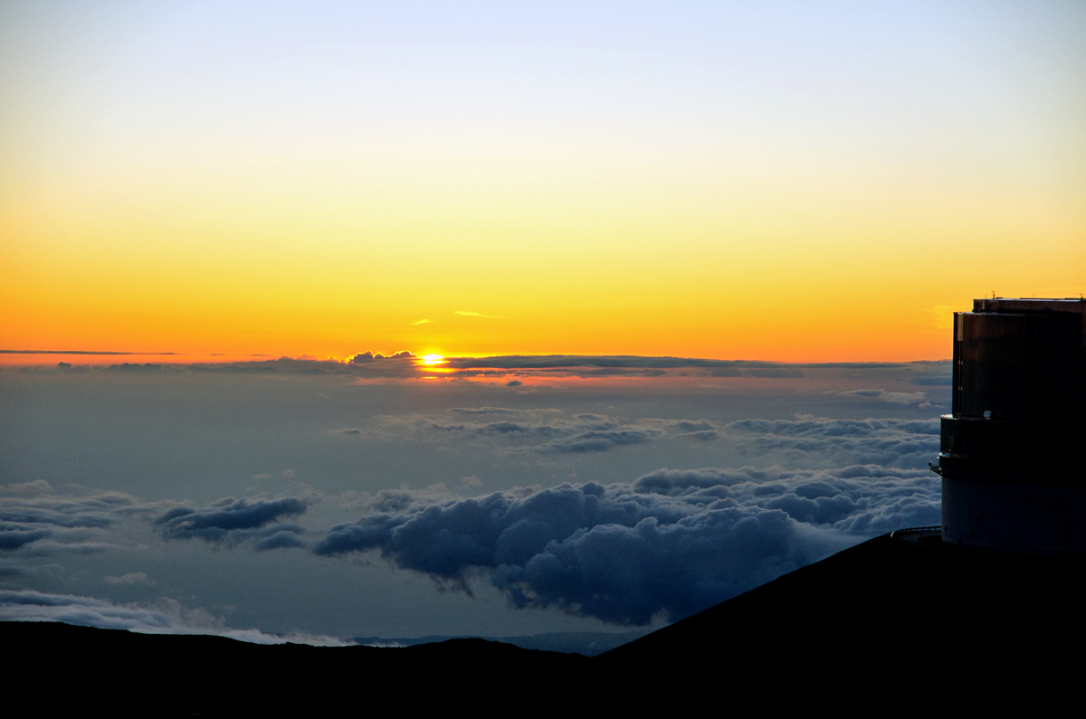 マウナケア山頁(中央奥)と各国の天体望遠鏡群 (c)国立天文台