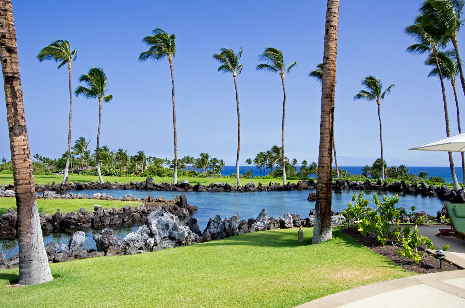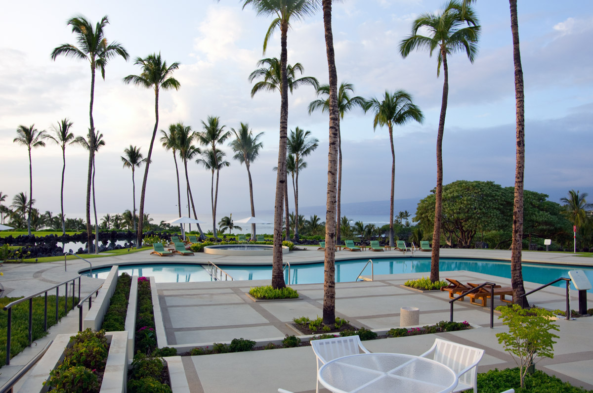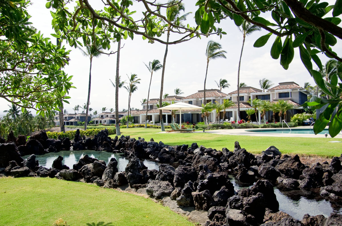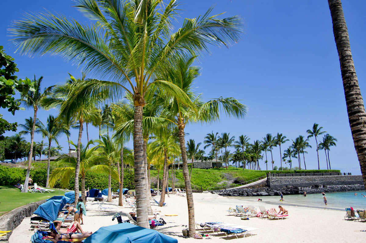 マウナケア山頁(中央奥)と各国の天体望遠鏡群 (c)国立天文台