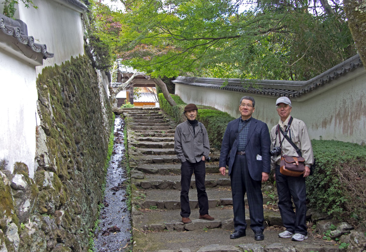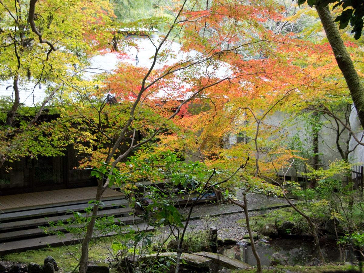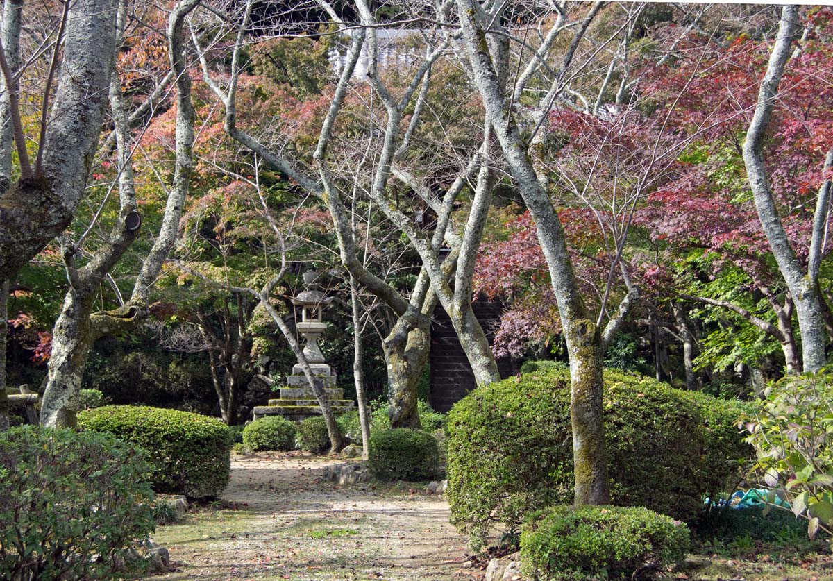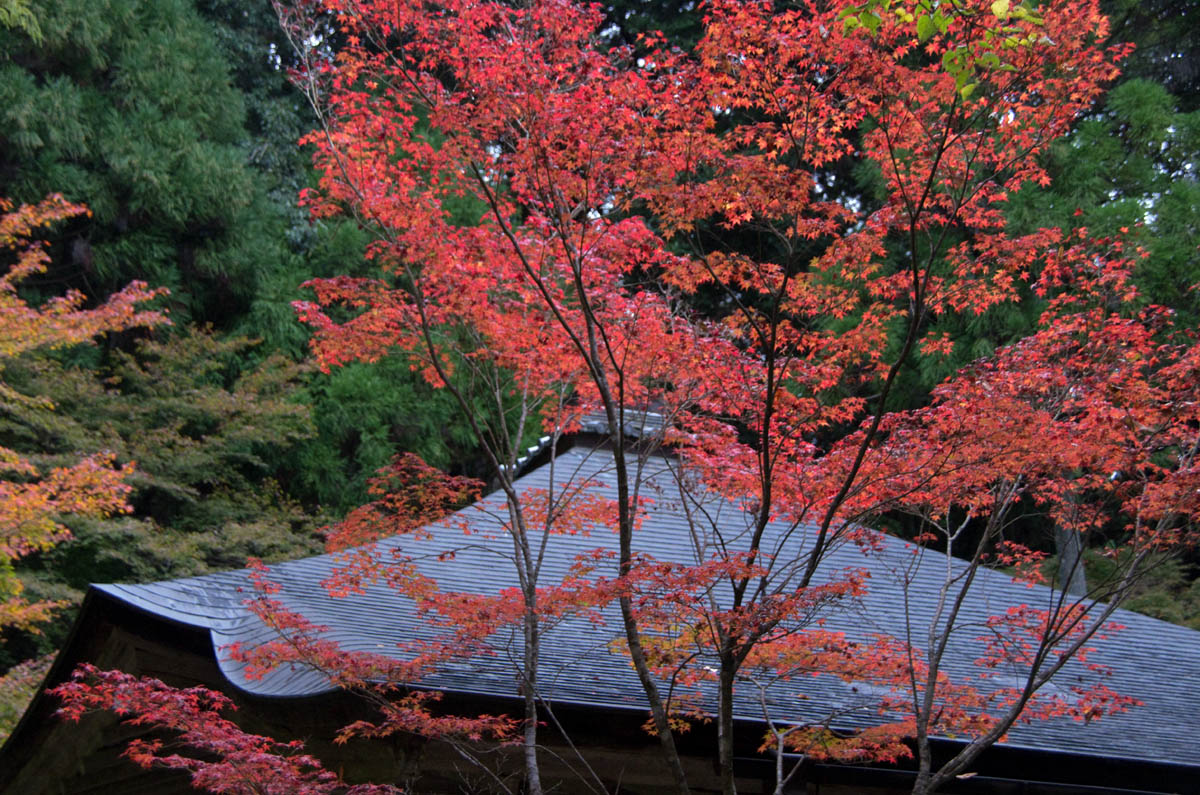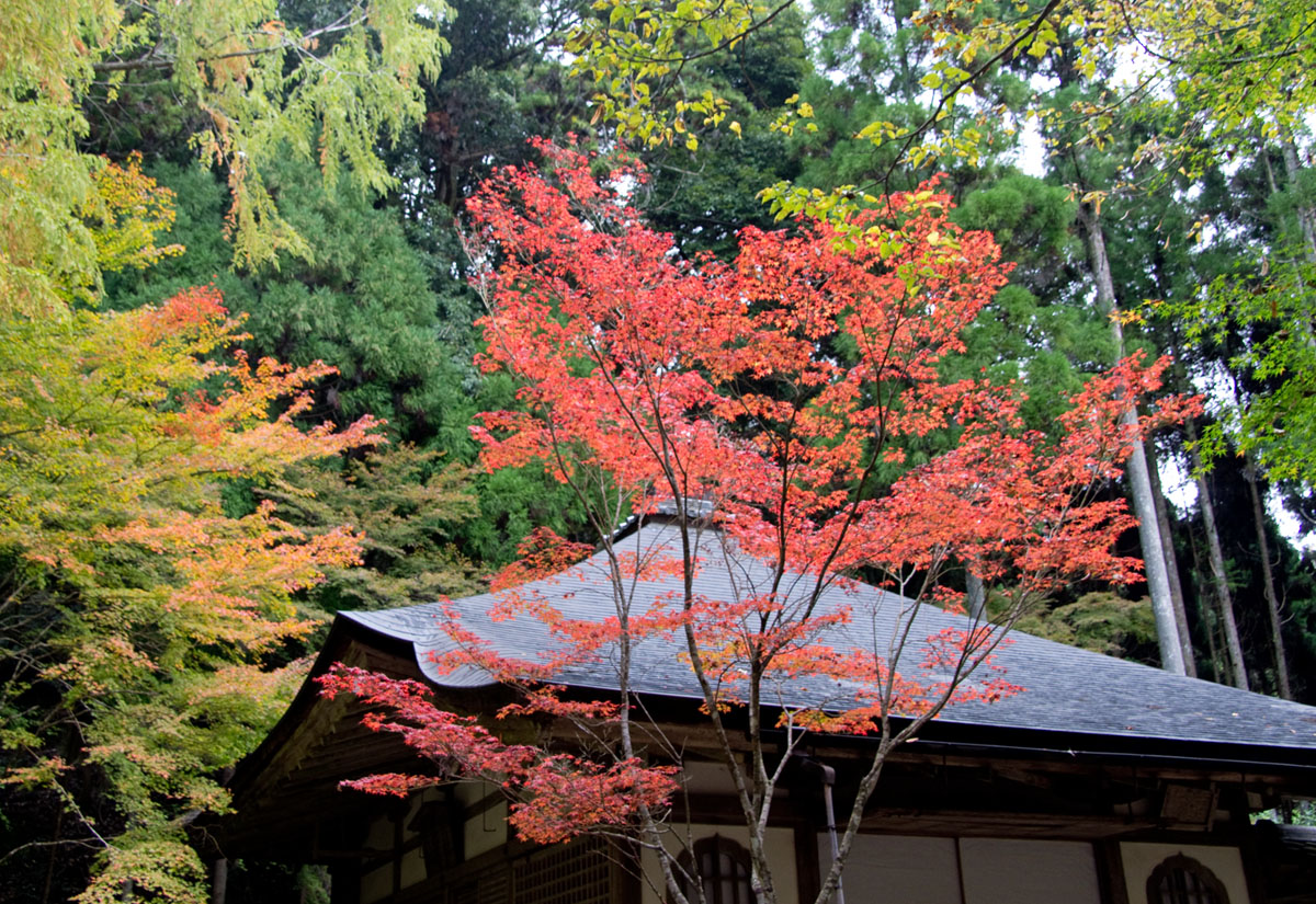 右側の国宝・石水院は、後鳥羽上皇の学問所を明恵上人が住居としていた建物で、簡素な造りが特徴である. 明恵上人樹上座禅像の写し、鳥獣戯画の写し、善財童子像などが展示.石水院の庭 動画