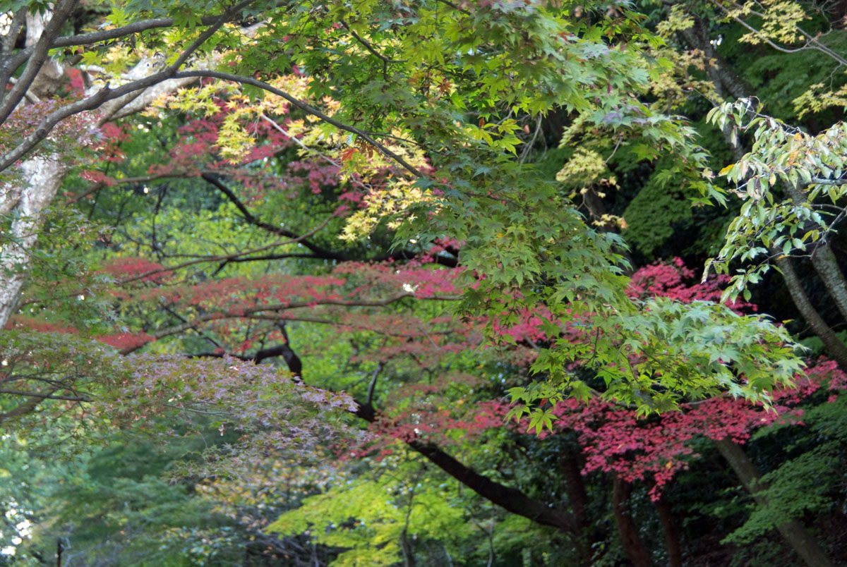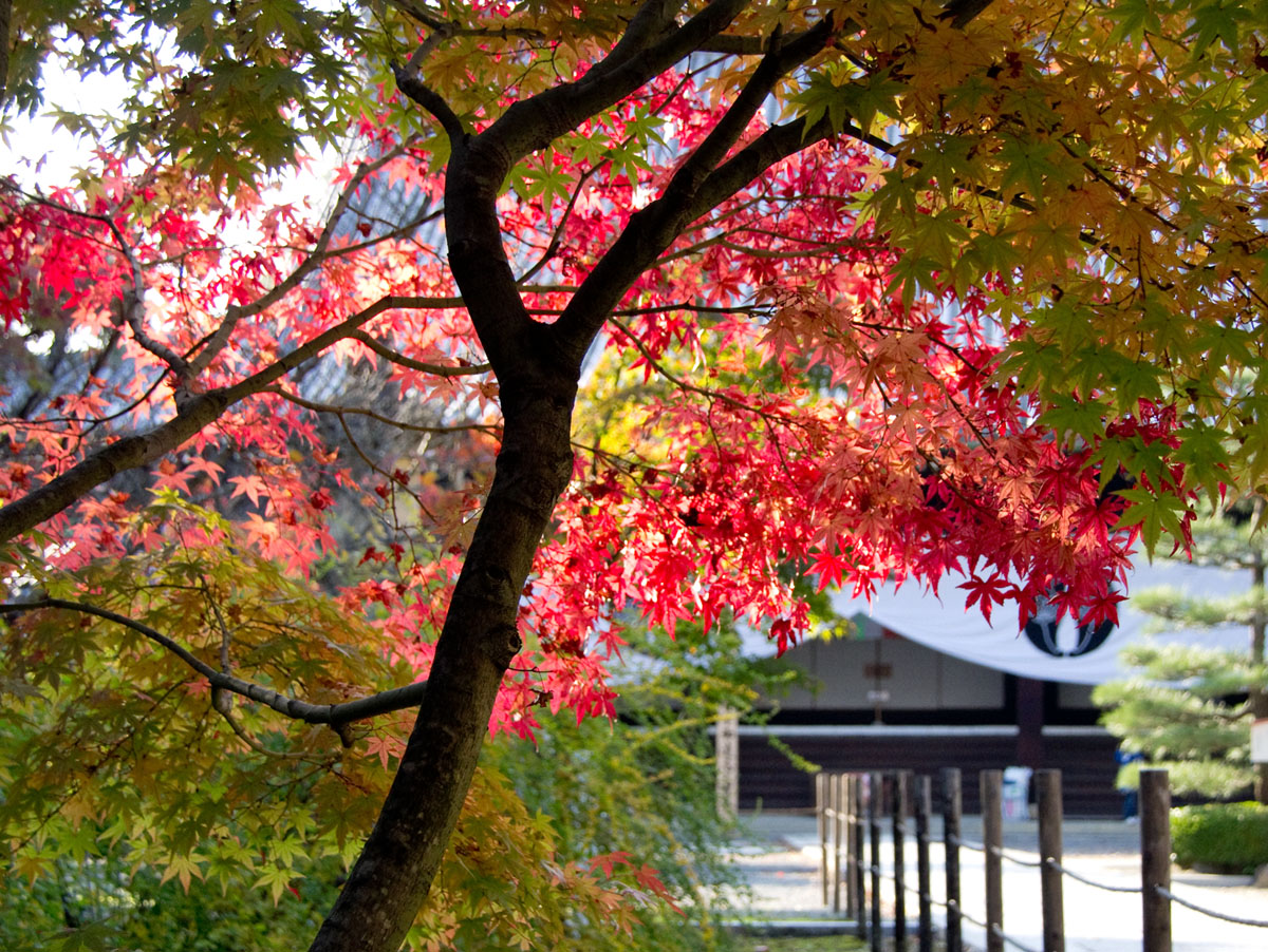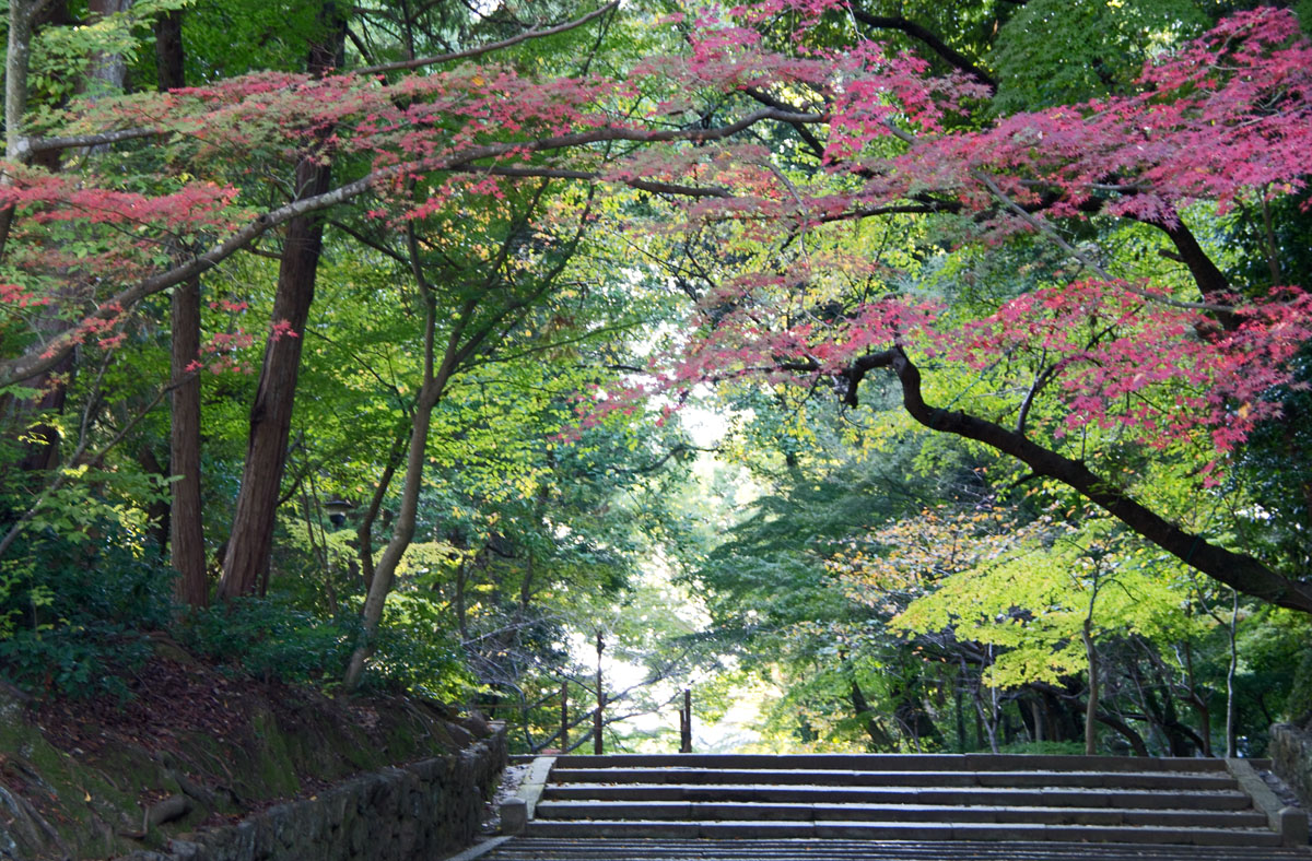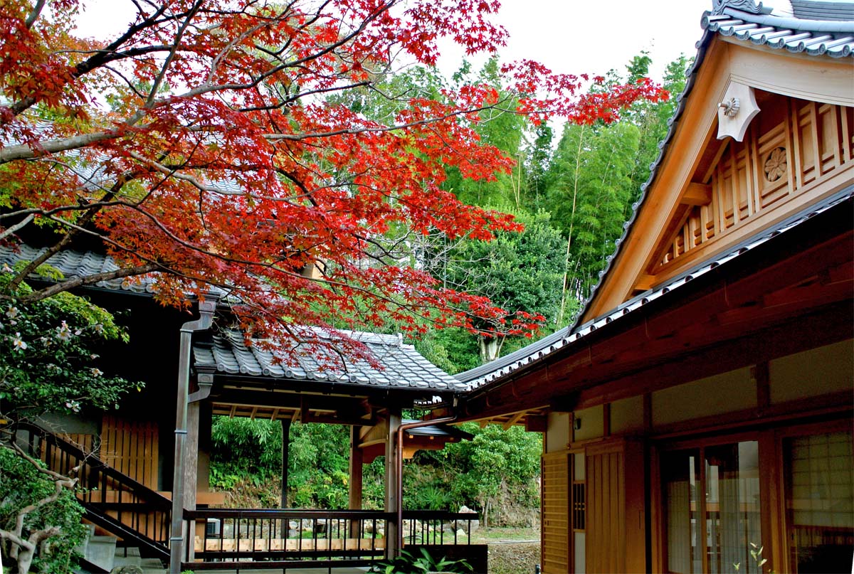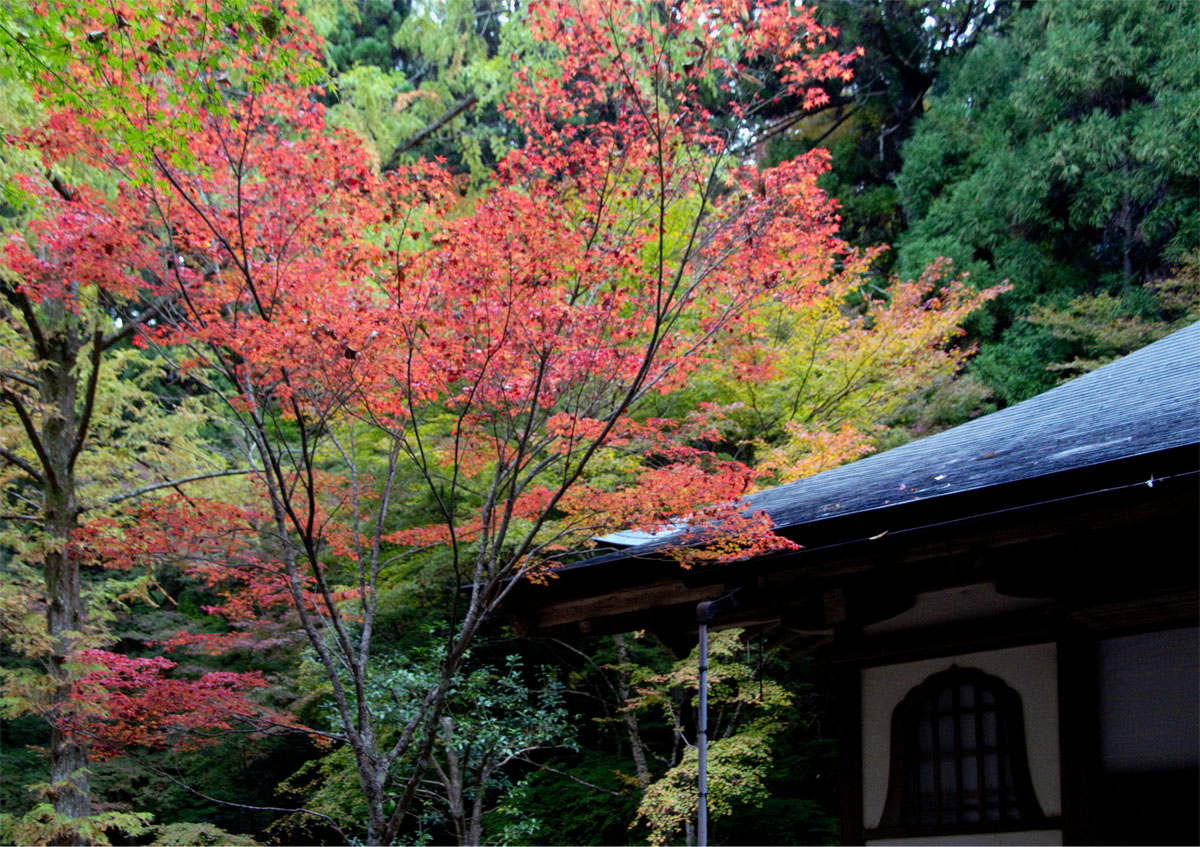 右側の国宝・石水院は、後鳥羽上皇の学問所を明恵上人が住居としていた建物で、簡素な造りが特徴である. 明恵上人樹上座禅像の写し、鳥獣戯画の写し、善財童子像などが展示.石水院の庭 動画