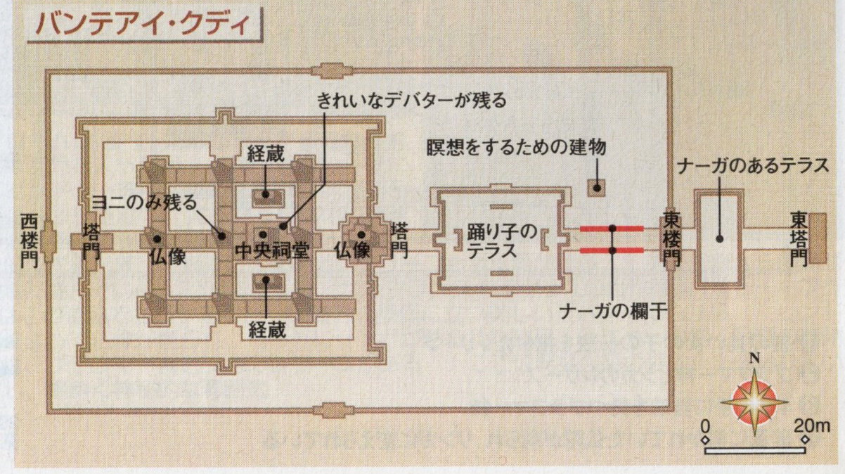 バンティアイ・クディの入り口の道を挟んだ反対側にある。ナーガの欄干が残っている