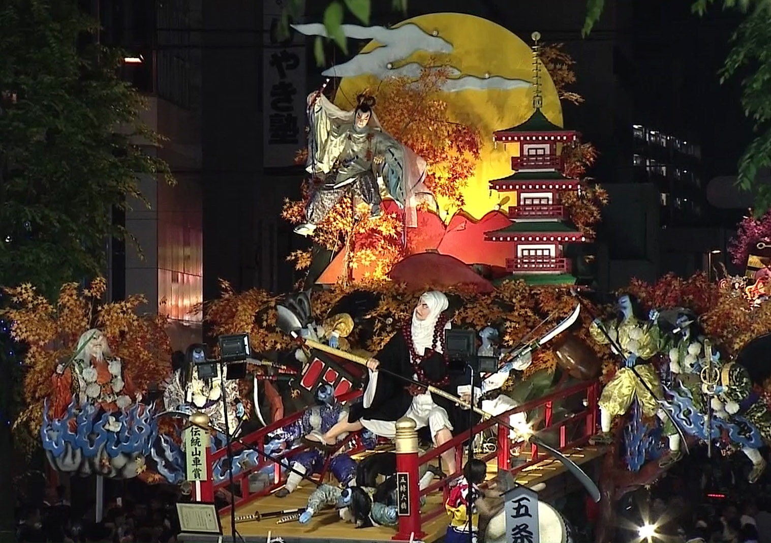 8月2日:中日(なかび)は山車の夜間合同運行、8月4日は後夜祭で山車の展示が行われる.