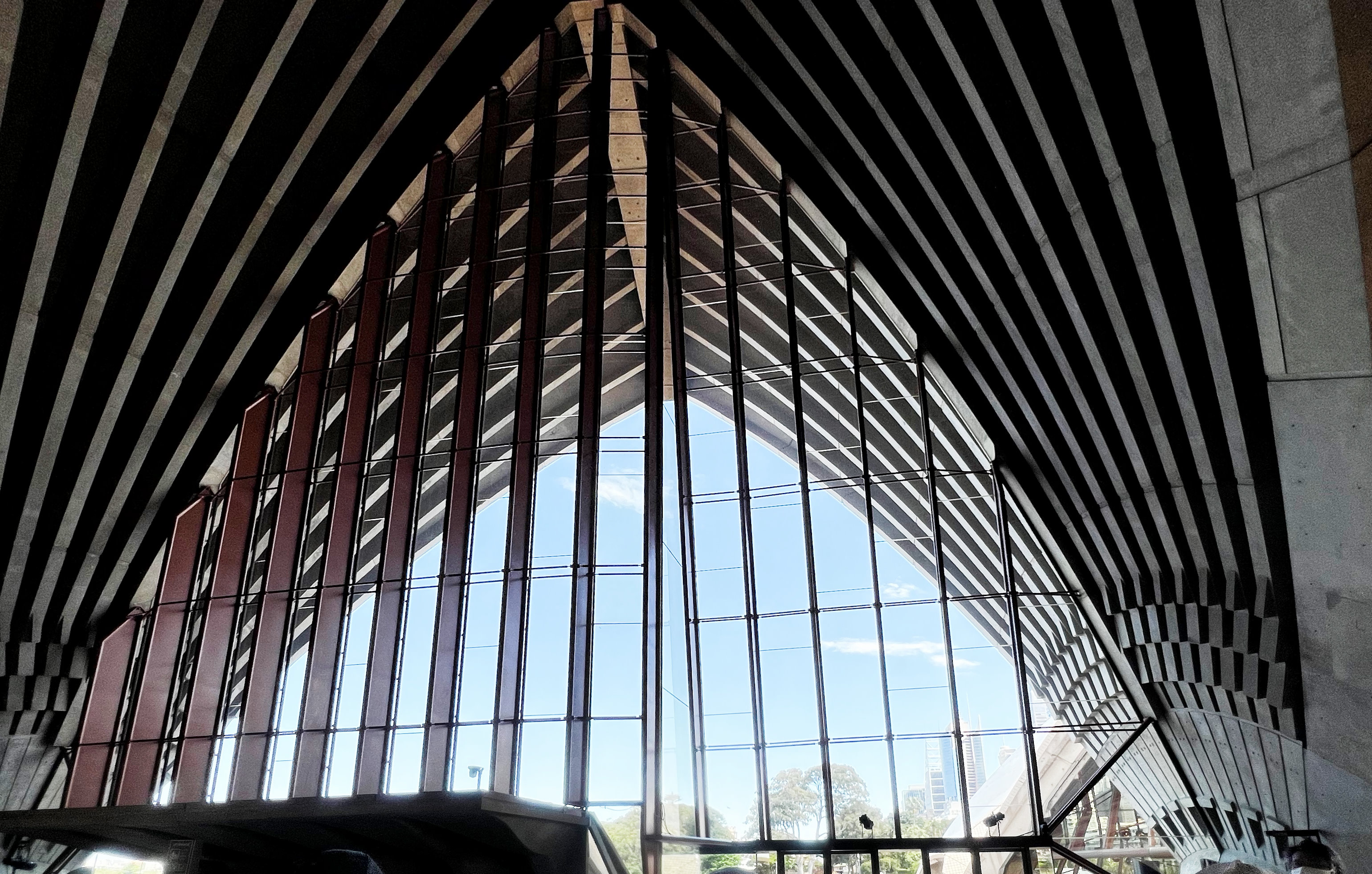 計画見直しで州政府の役人と協力関係を築けなかったウツソン氏が建築設計者から辞任したため、継いだ数人の建築家たちにより、予定より10年遅れ、1973年に完成しました。総工費は当初予定された700万ドルの14倍以上にもなる1億200万ドルに達したと言います。内部には収容人数2679席の「コンサートホール」を始め、大小5つのホール/ シアターと5つのリハーサルスタジオ、4つのレストランと6つのバーがあります。「コンサートホール」には、世界最大級の機械式パイプオルガン、「グランドオルガン」が鎮座しています。建物の高さは183m、横幅は120m、面積は1.8ヘクタール。2007年に世界遺産登録、建築完成が最も新しい世界遺産。