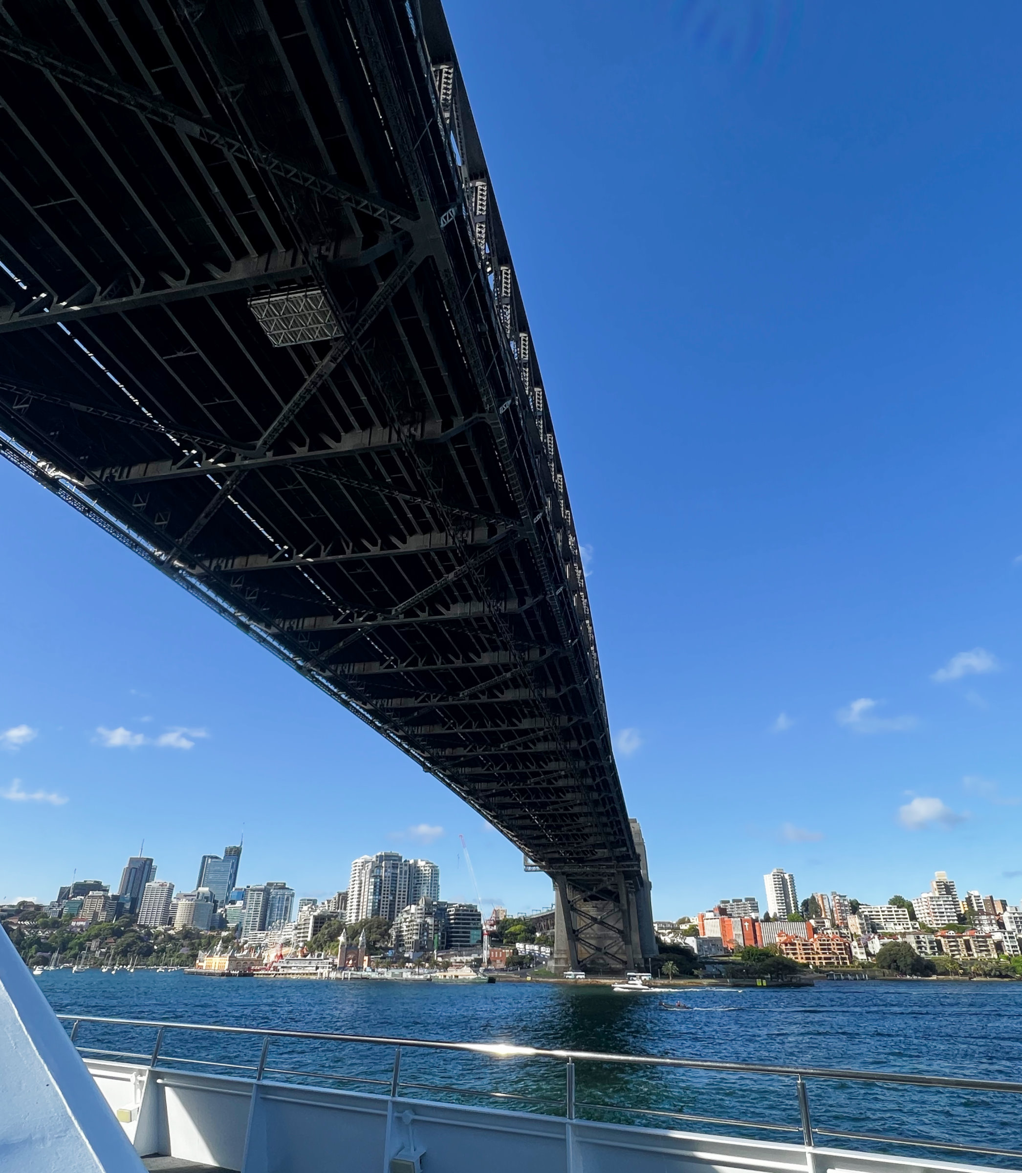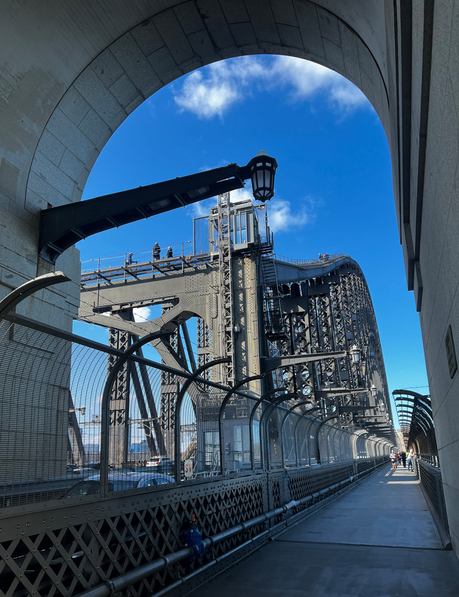 ハーバーブリッジを下から見る、幅49mと広い、ノースシドニー側のパイロン