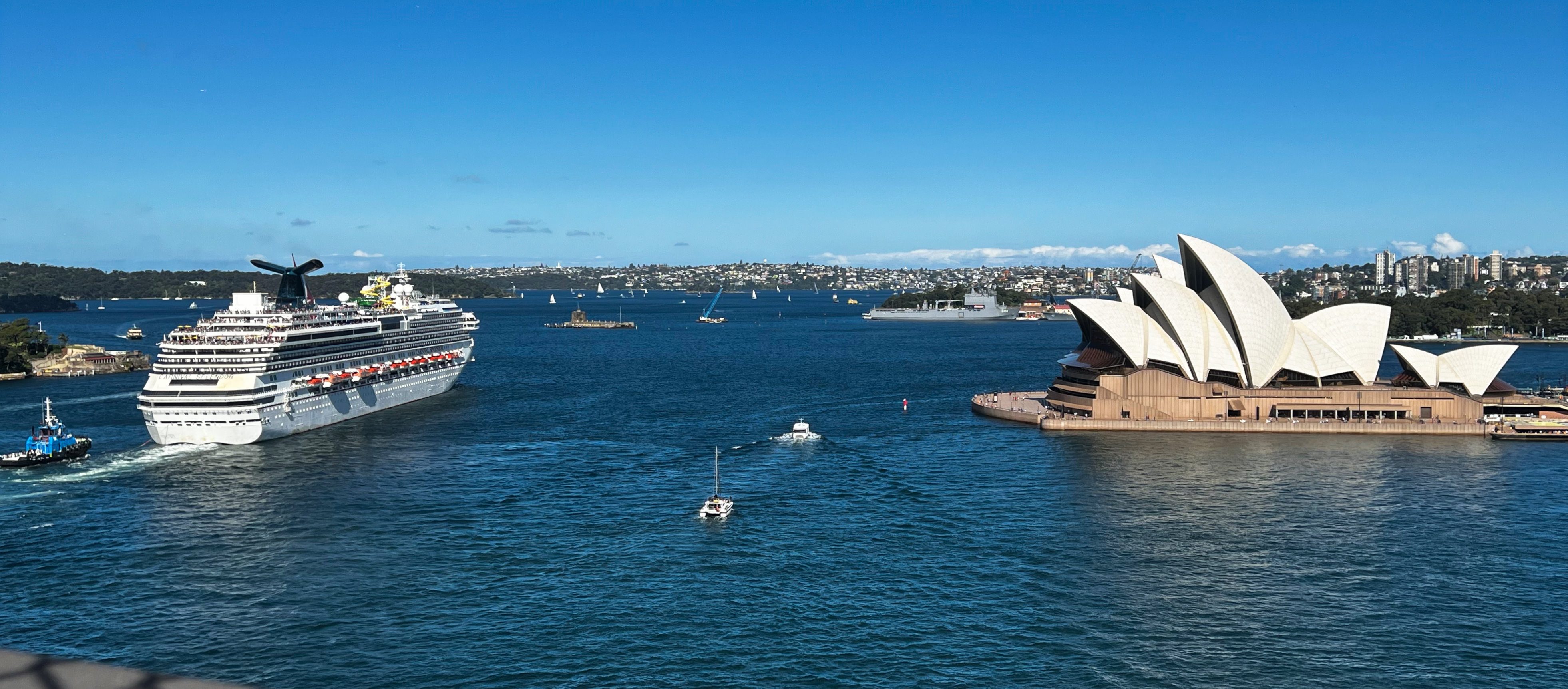 パイロン展望台からオペラハウスと巨大クルーズ船
