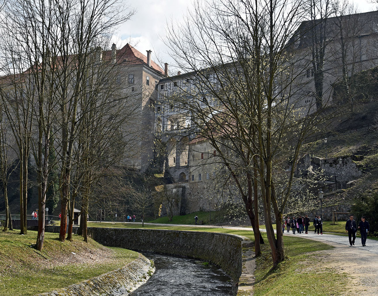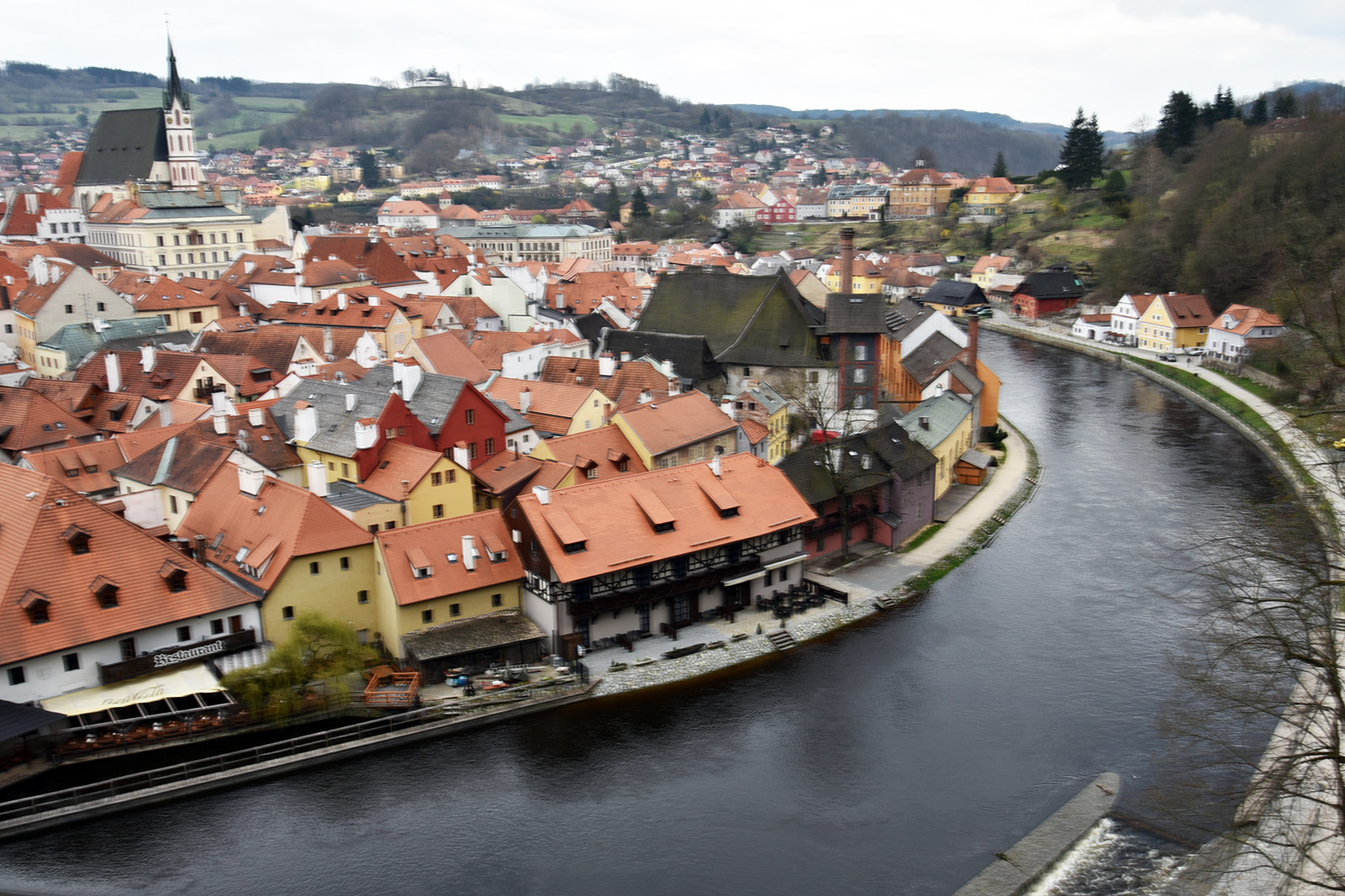 ヴルタヴァ川に囲まれた市街 (城の展望ポイントから)