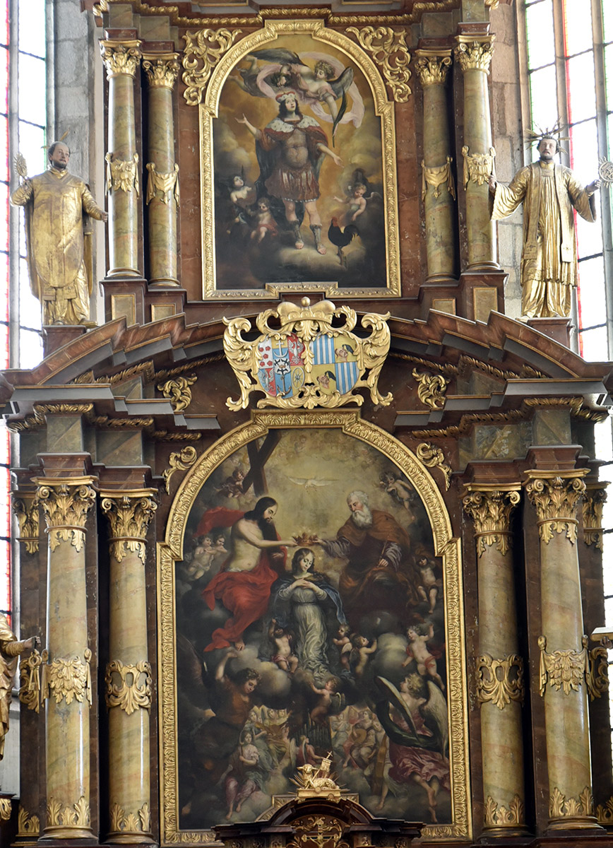 スヴォルノスティ広場に出る 聖母マリアの柱、下はバロック様式の噴水