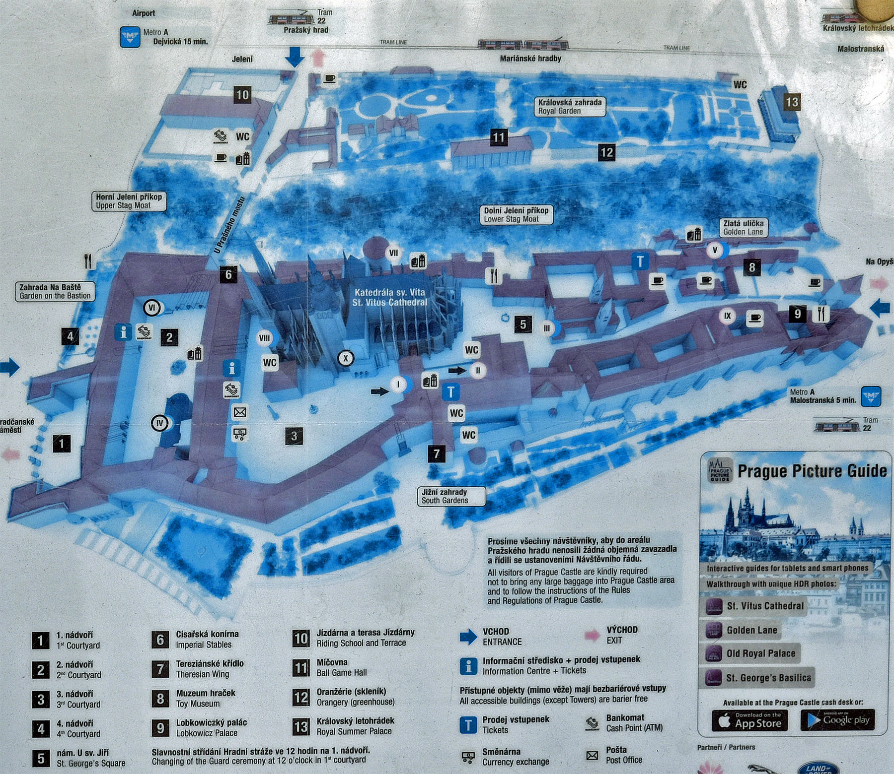 聖イジー教会のベランダからプラハ旧市街 ヴルダヴァ川、マーネス橋とカレル橋