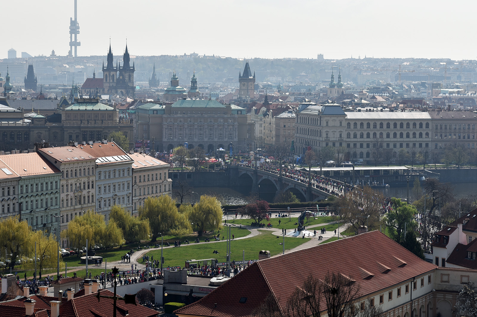 当日はプラハマラソンが開催されていた。マーネス橋や沿道で多くの人人が応援している。