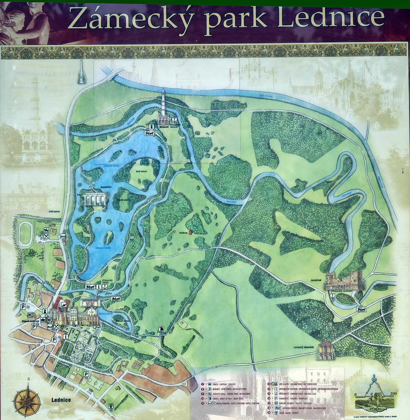 チェコ南東部のレドニツェは、ヨーロッパ屈指の名門貴族であるリヒテンシュタイン侯爵家の領土だった。その土地に位置する城や建造物群、周辺の庭園や森などが侯爵家の作り上げた文化的景観として、1996年に世界遺産に登録された。ネオゴシック様式のレドニツェ城とバロック様式のヴァルティツェ城が主軸となり、その間にベズルチ通りと呼ばれる道が作られ、19世紀初期にはイギリス式庭園が建設された。城の庭園内に造られたすべての小道は、ミナレットと呼ばれる高い塔に通じ、60mの高さを誇る塔の回廊の頂上からは町の穏やかな風景が堪能できる。