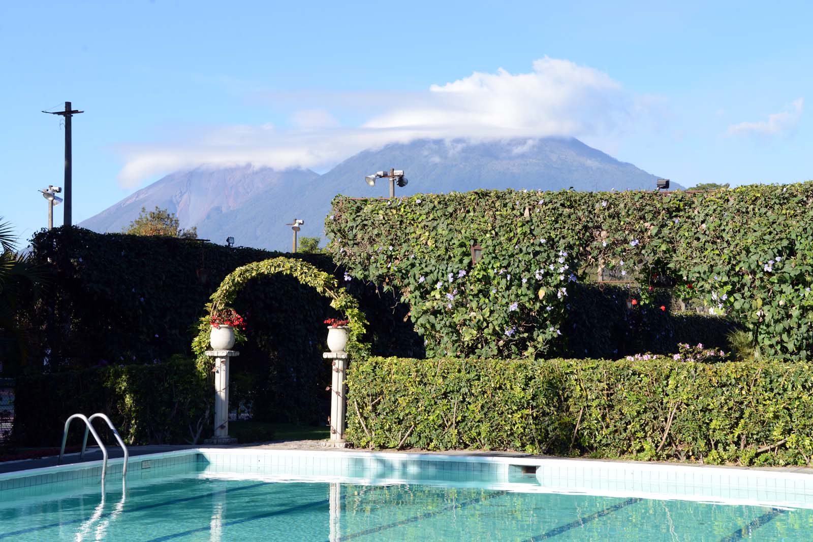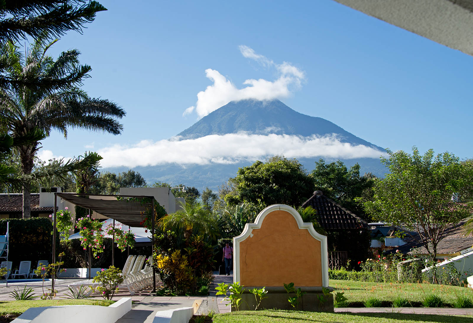 グアテマラの火山 朝, アンティグアのホテルから