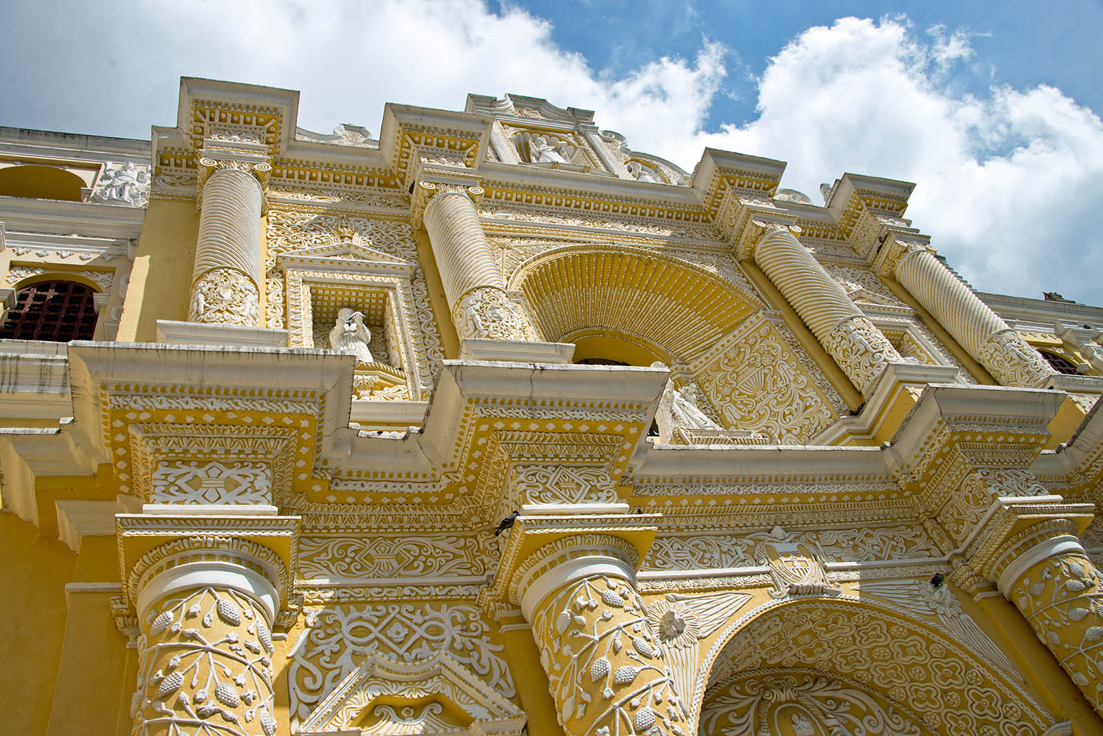 この都市はアグア火山などに囲まれ、大聖堂を中心とする碁盤の目のような区画に整備された市街には、石畳の道が走り、旧グアテマラ総督府、ラ・メルセー聖堂、修道院が配置され、コロニアル・バロック様式の色彩豊かな建物が立ちぶ美しい街である。1979年世界遺産に登録された。