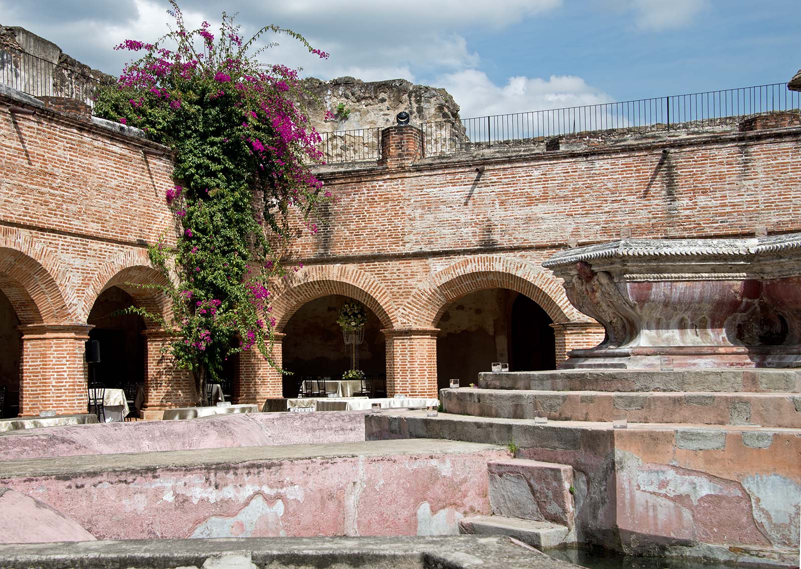 中庭にある中米一の噴水 ブーゲンビリアが咲く